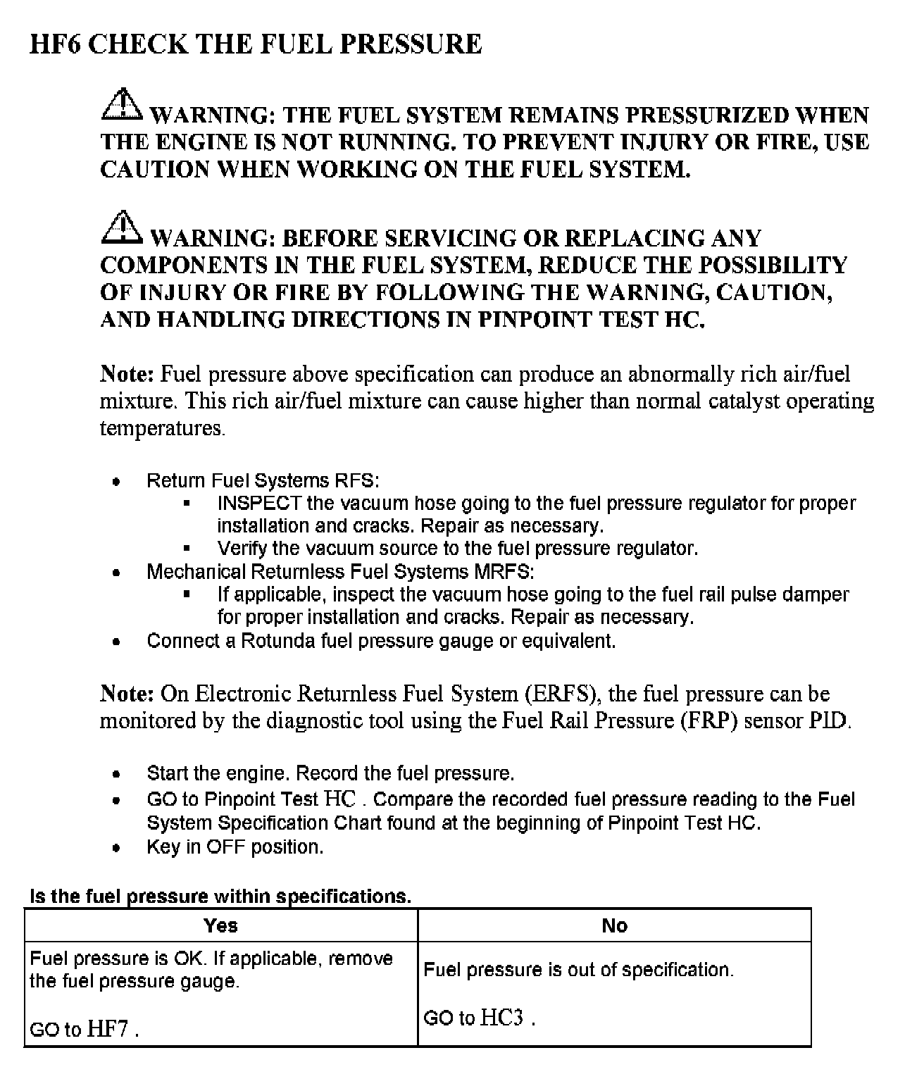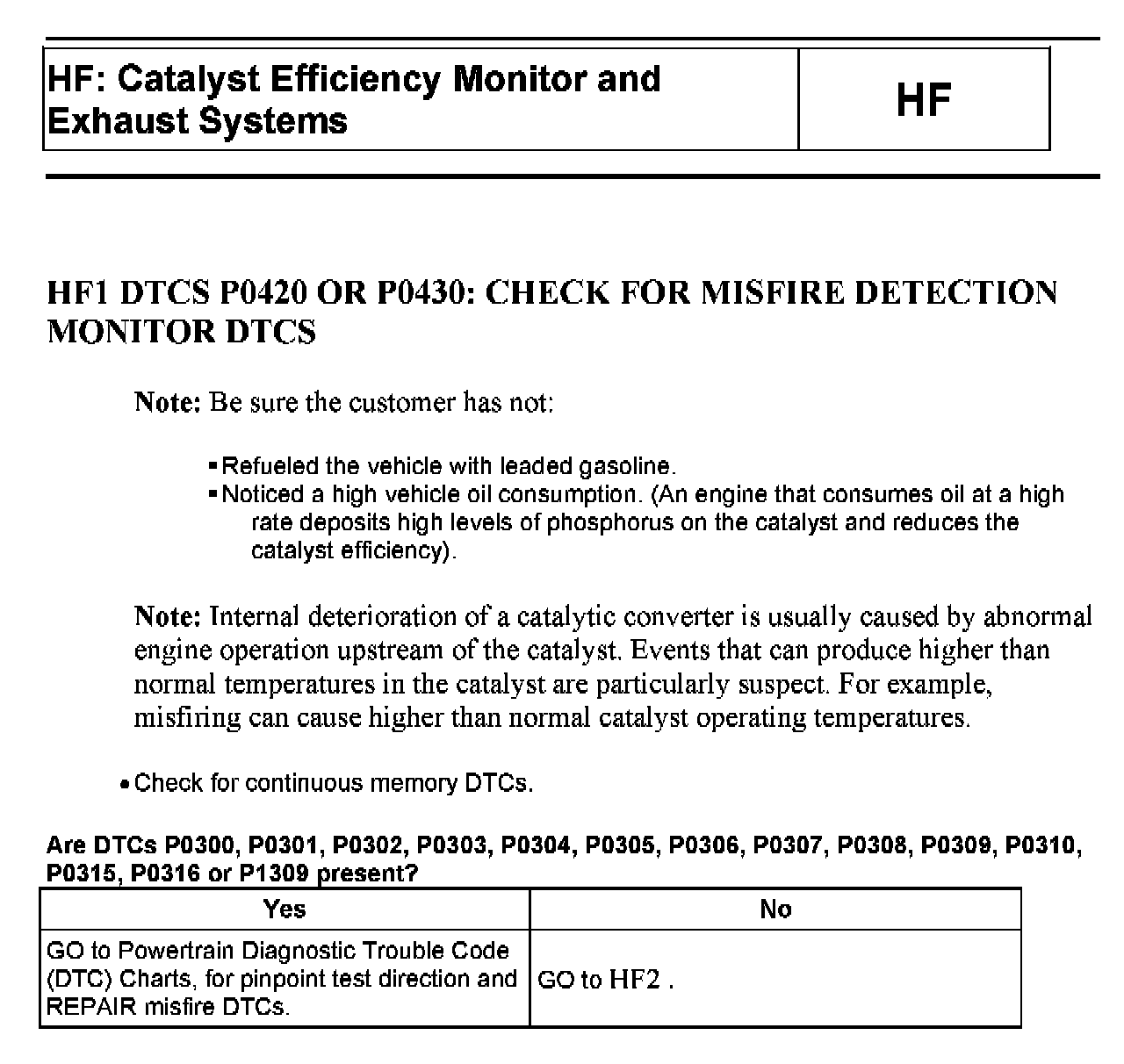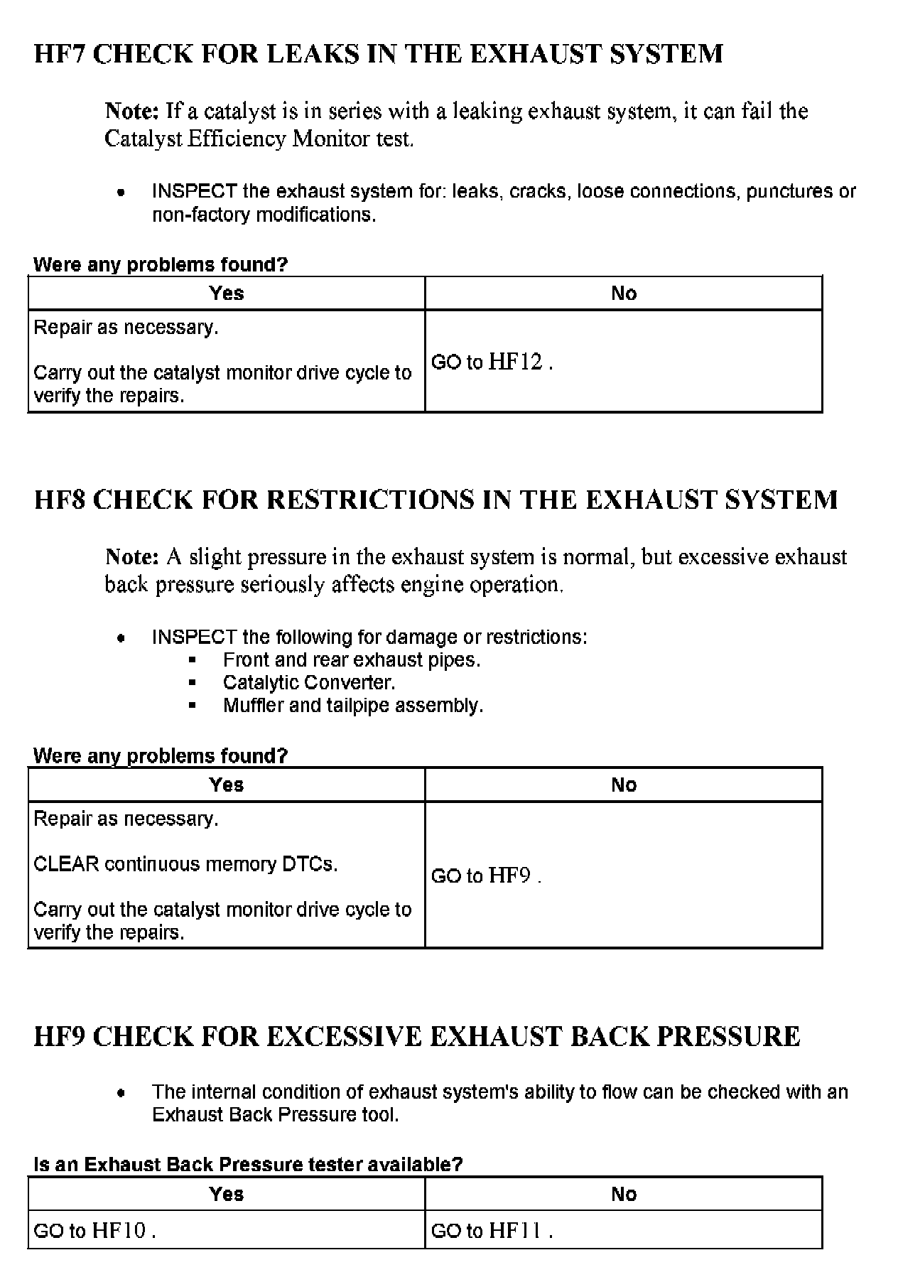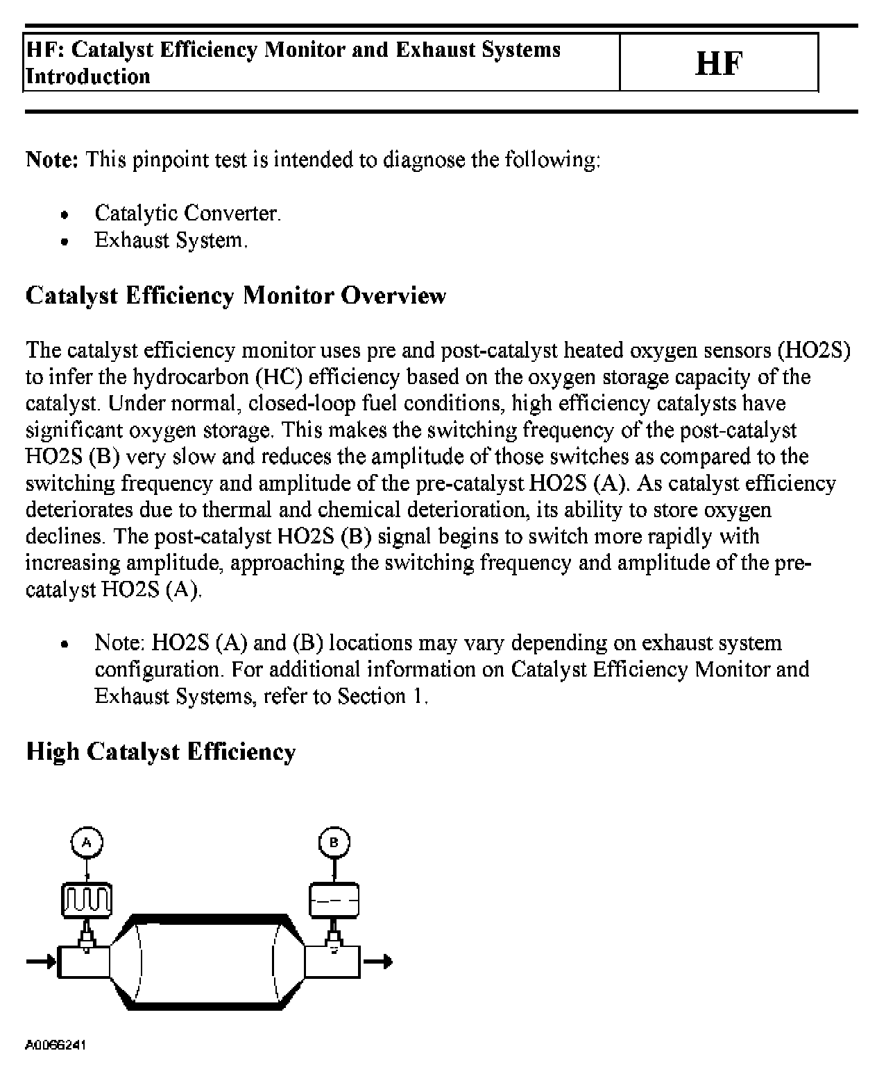 Tests HF: Catalyst Efficiency Monitor and Exhaust Systems
