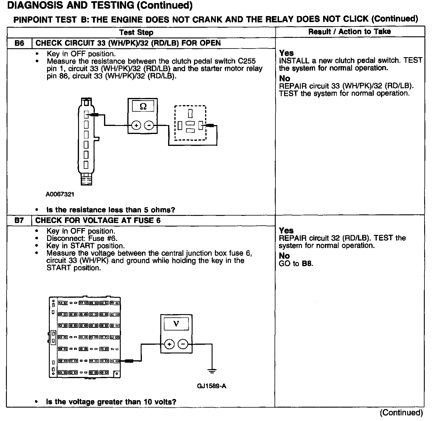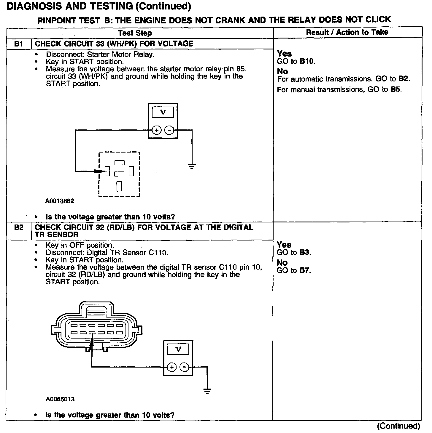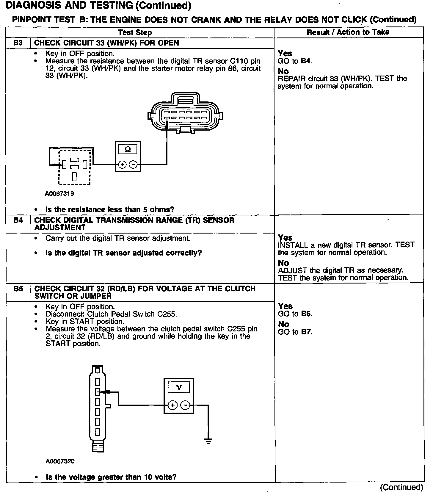 PINPOINT TEST B: THE ENGINE DOES NOT CRANK AND THE RELAY DOES NOT CLICK