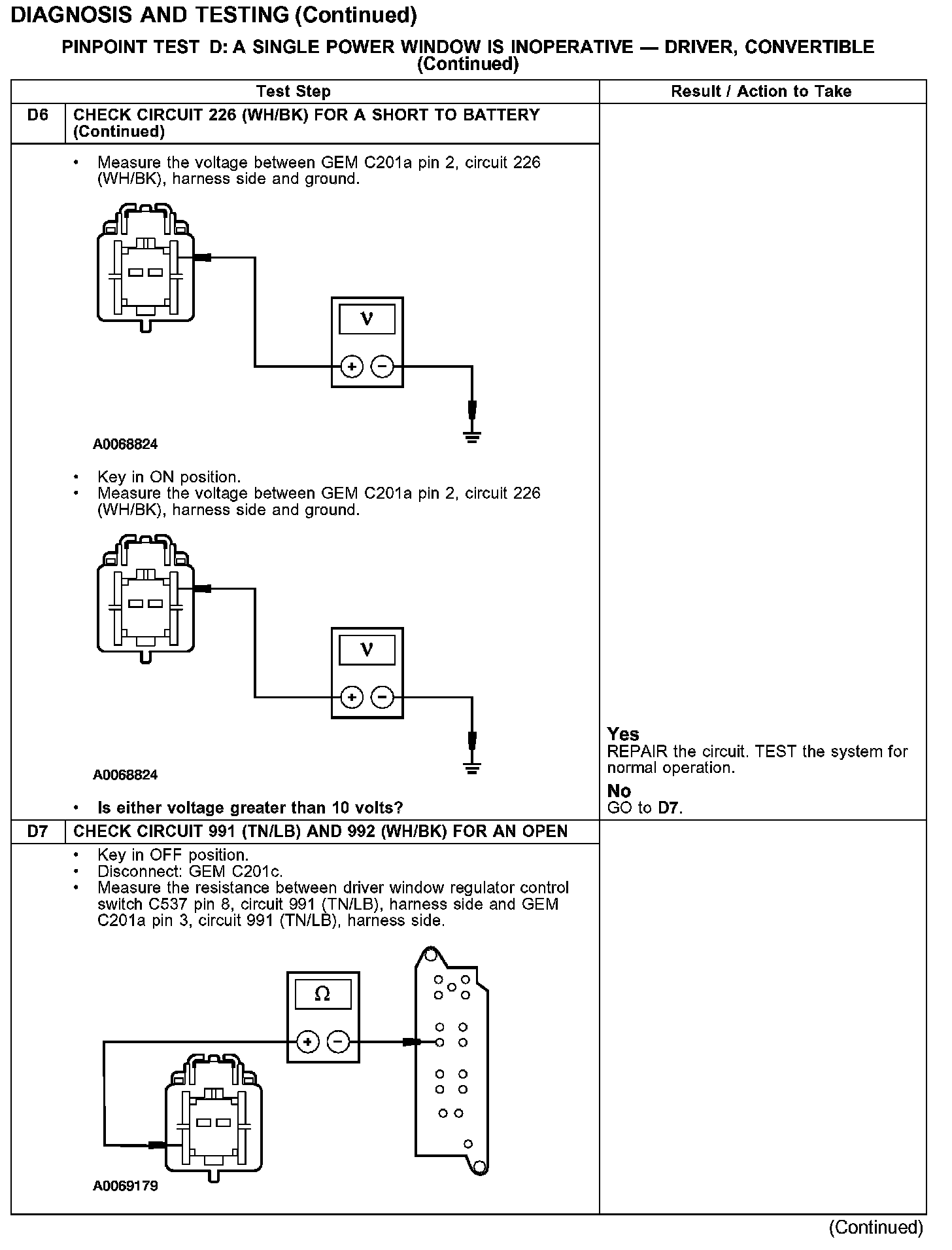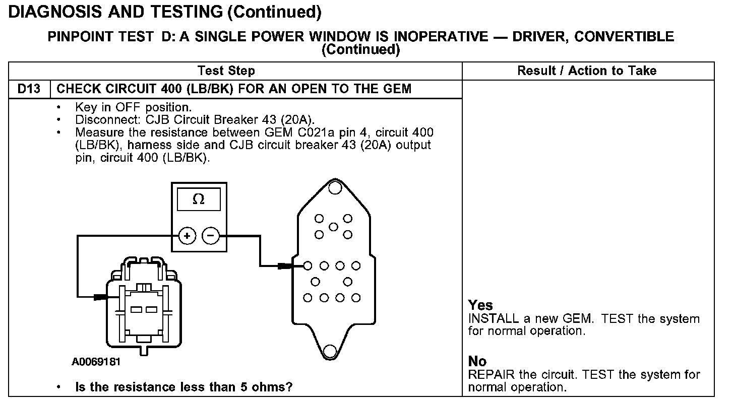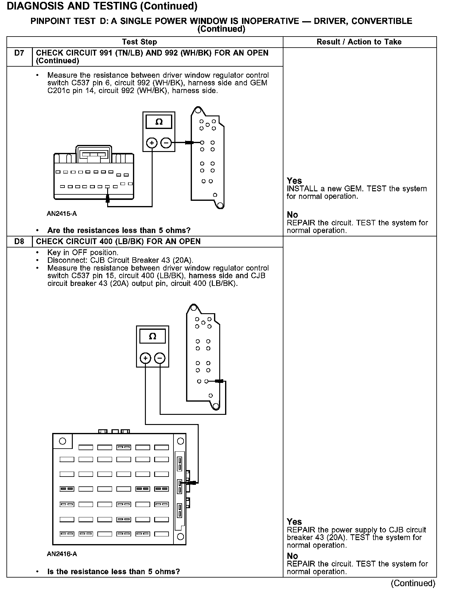 PINPOINT TEST D: A SINGLE POWER WINDOW IS INOPERATIVE - DRIVER, CONVERTIBLE