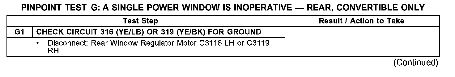 PINPOINT TEST G: A SINGLE POWER WINDOW IS INOPERATIVE - REAR, CONVERTIBLE ONLY