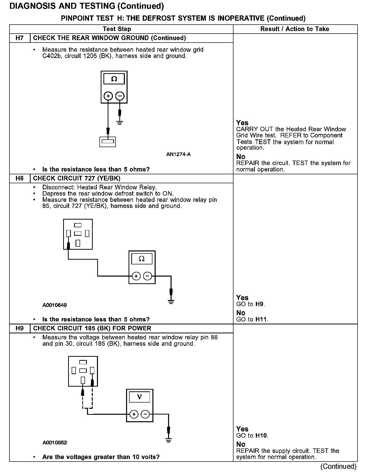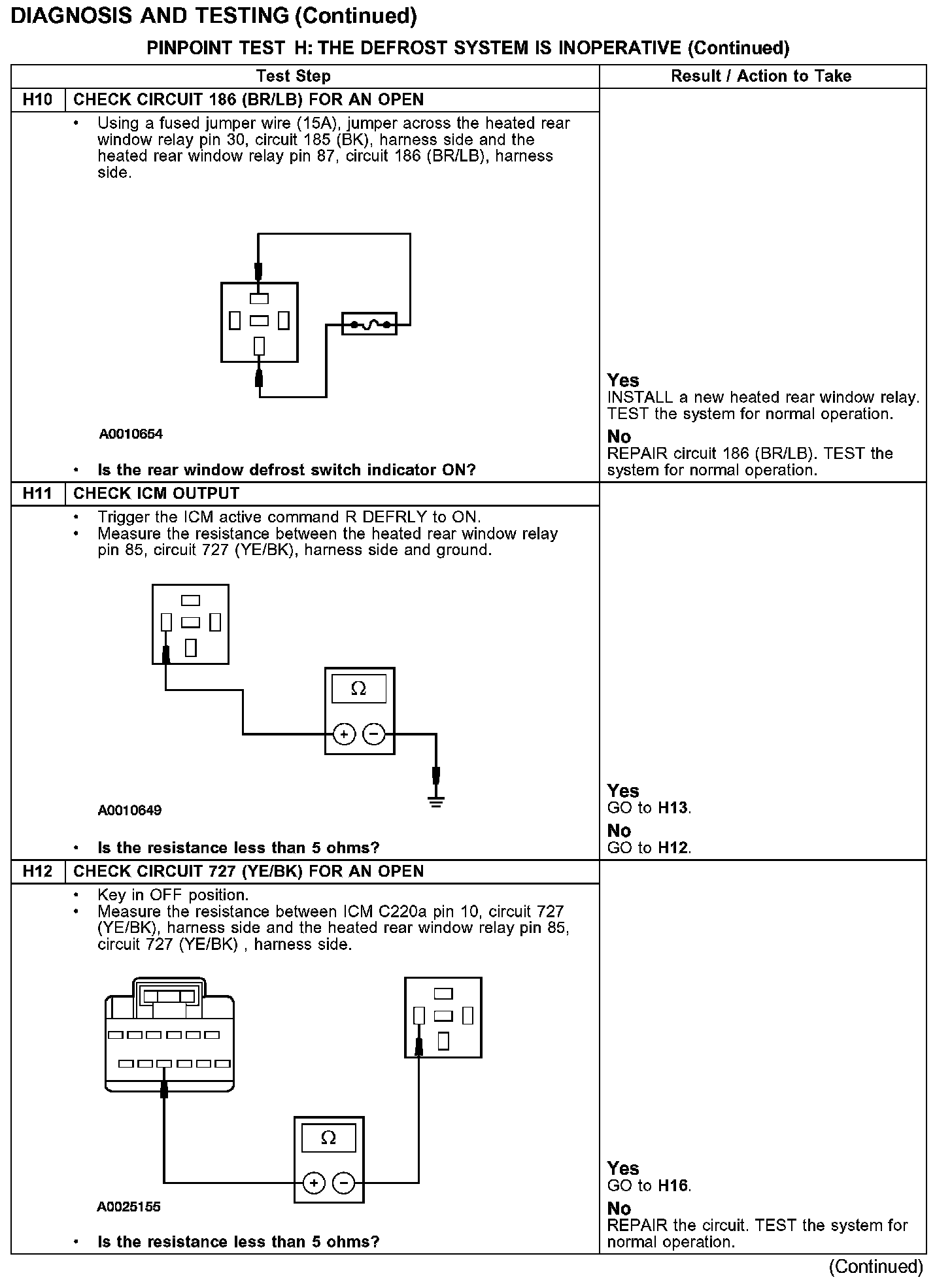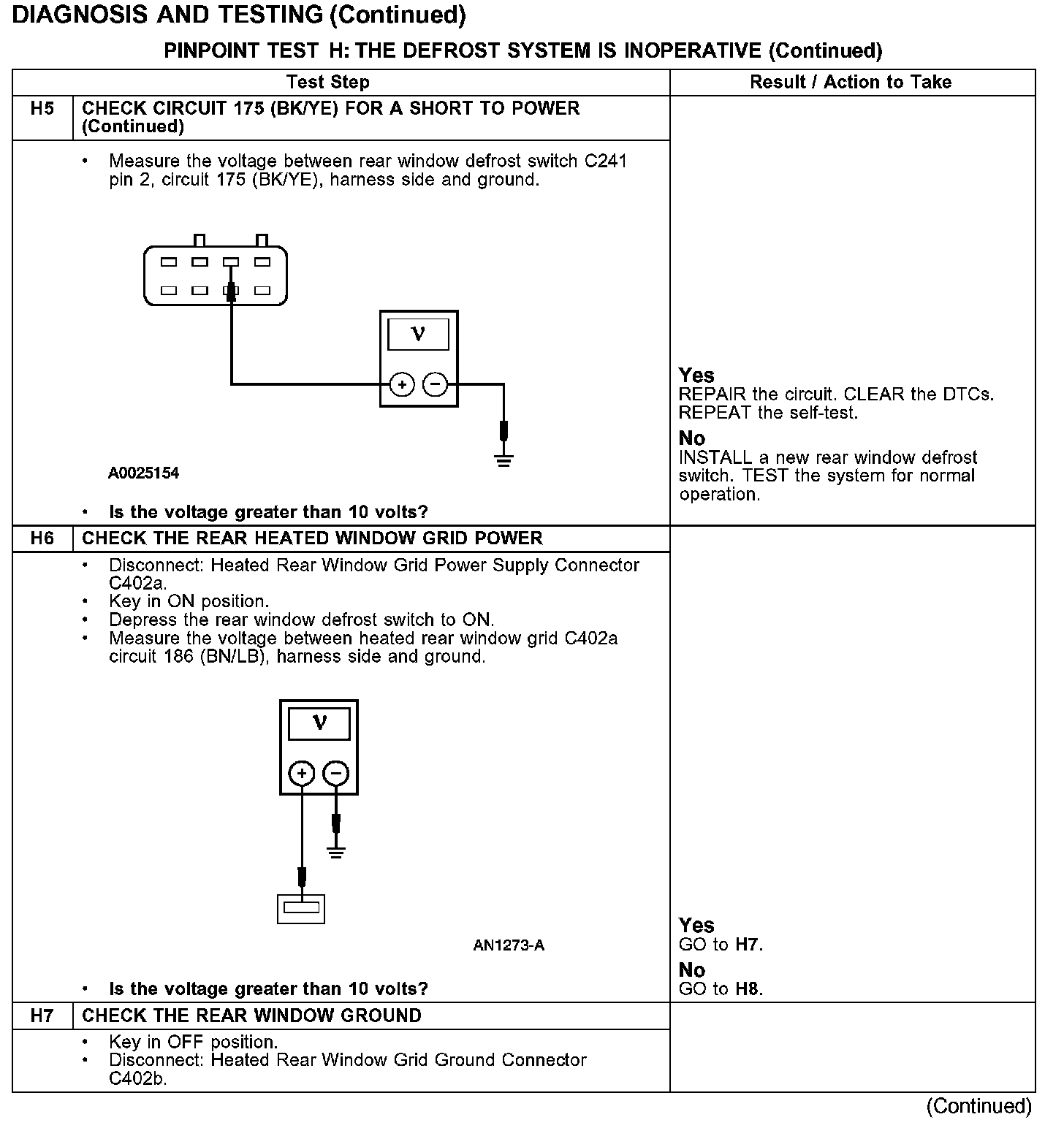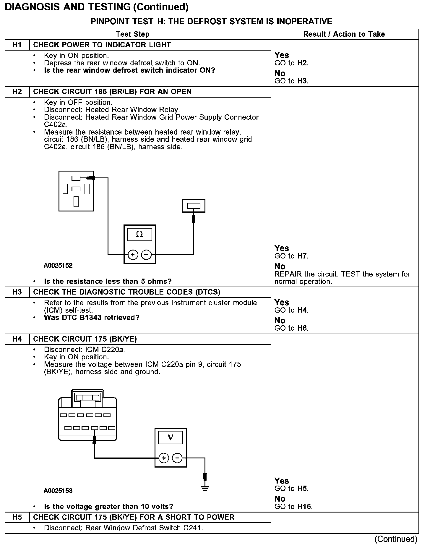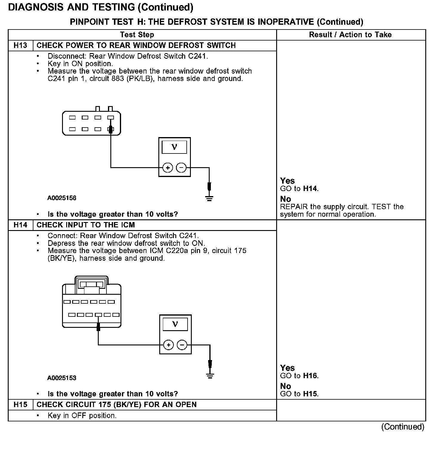 PINPOINT TEST H: THE DEFROST SYSTEM IS INOPERATIVE