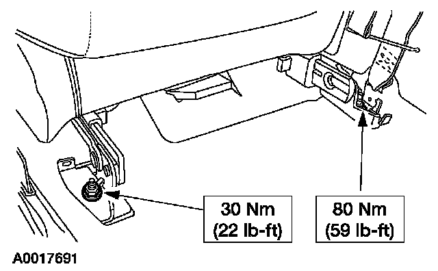 4. NOTE: If equipped, make sure to position the safety belt anchor on top of the seat track before installing the nut.