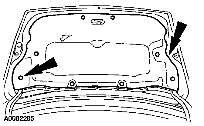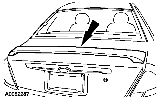 6. CAUTION: Use care when unsnapping the ends of the spoiler from the decklid. The spoiler may slide across the decklid marring the exterior finish.