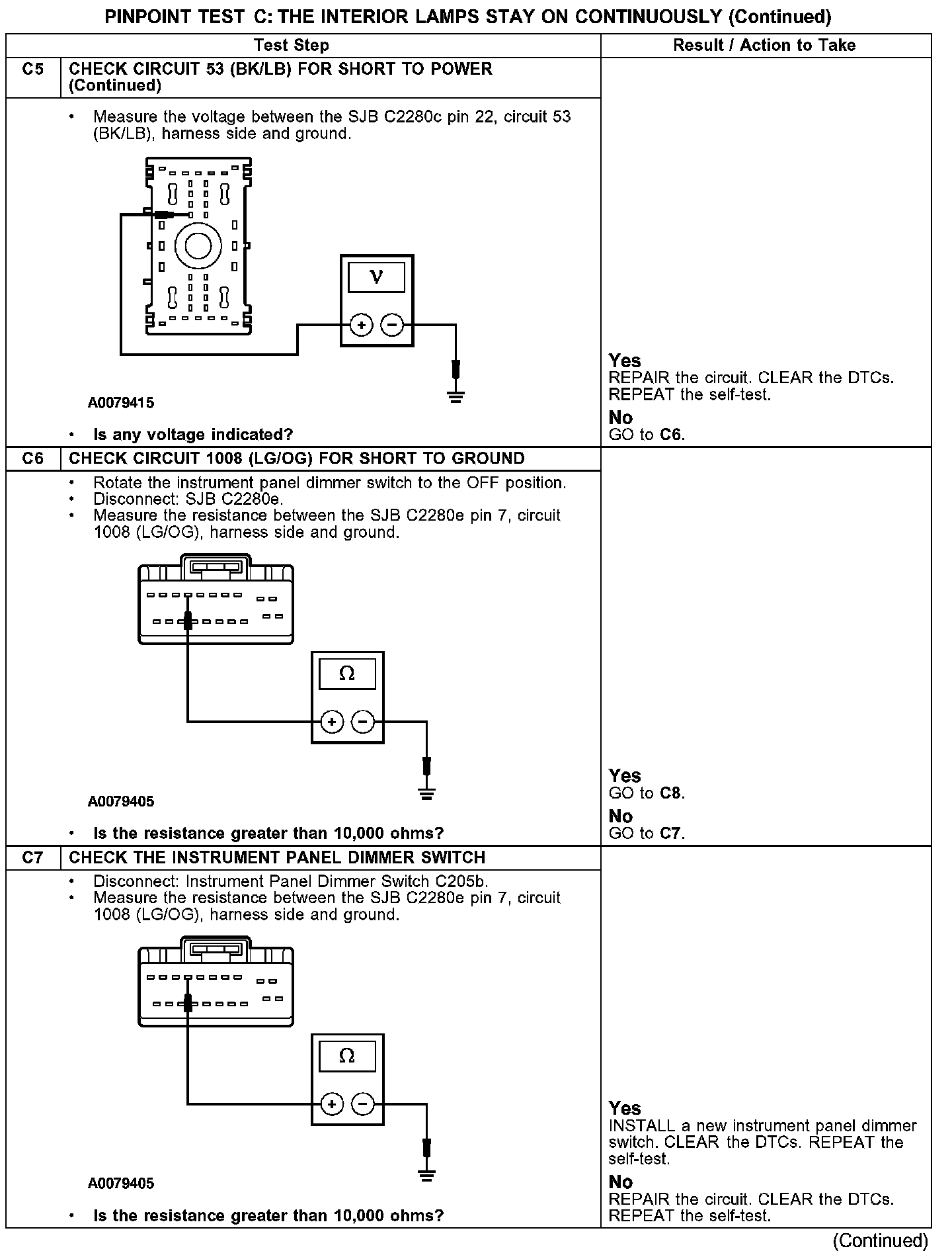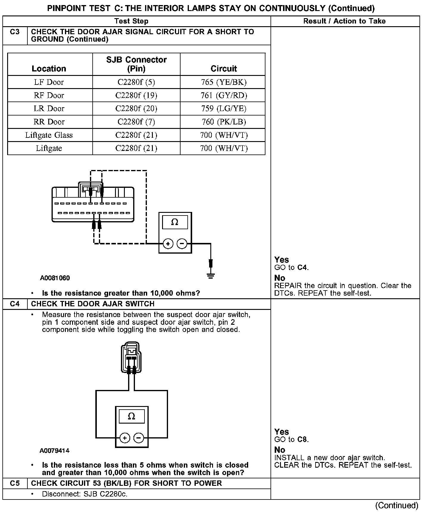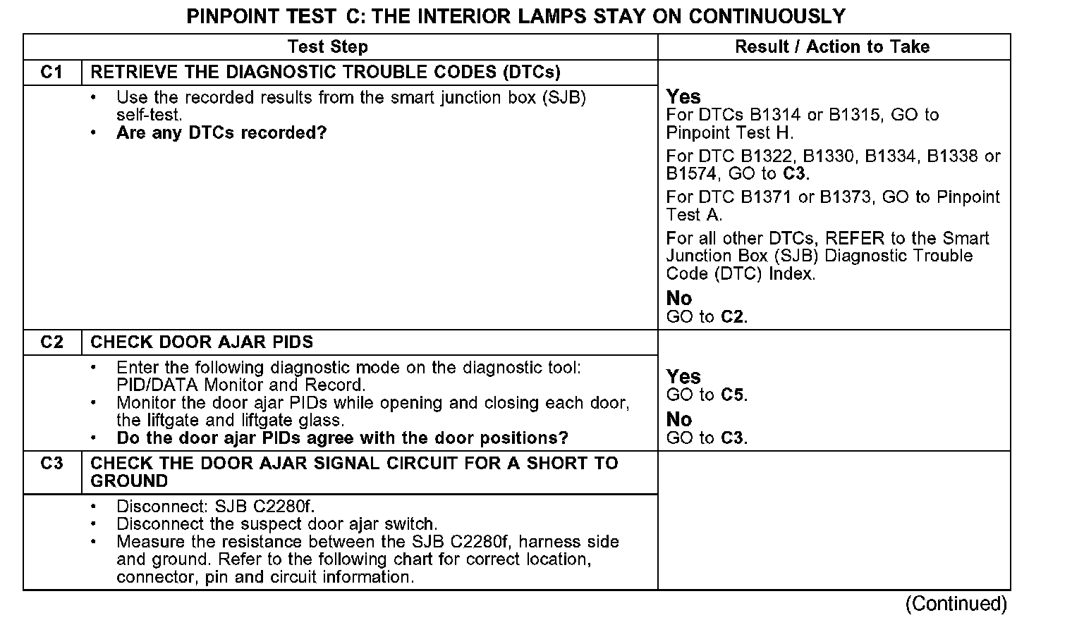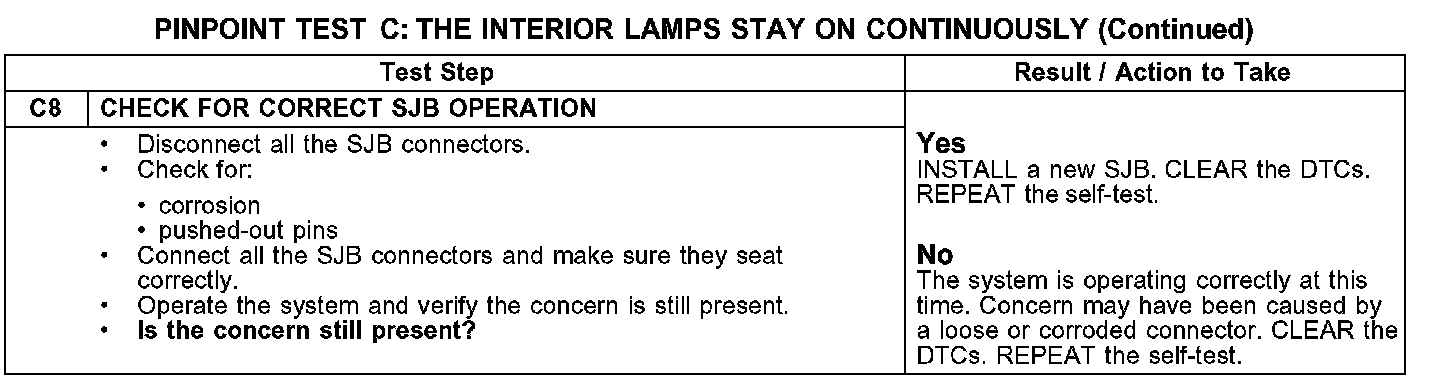 PINPOINT TEST C: THE INTERIOR LAMPS STAY ON CONTINUOUSLY