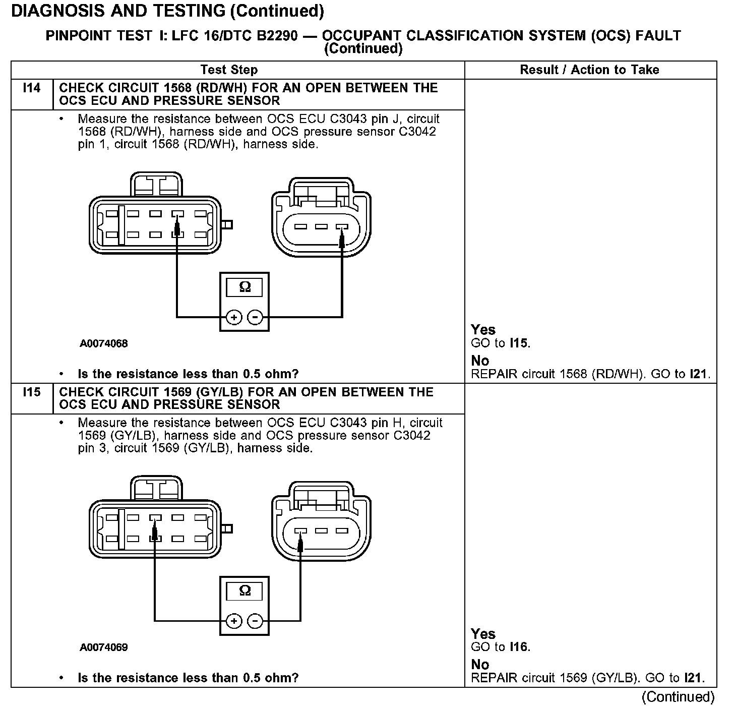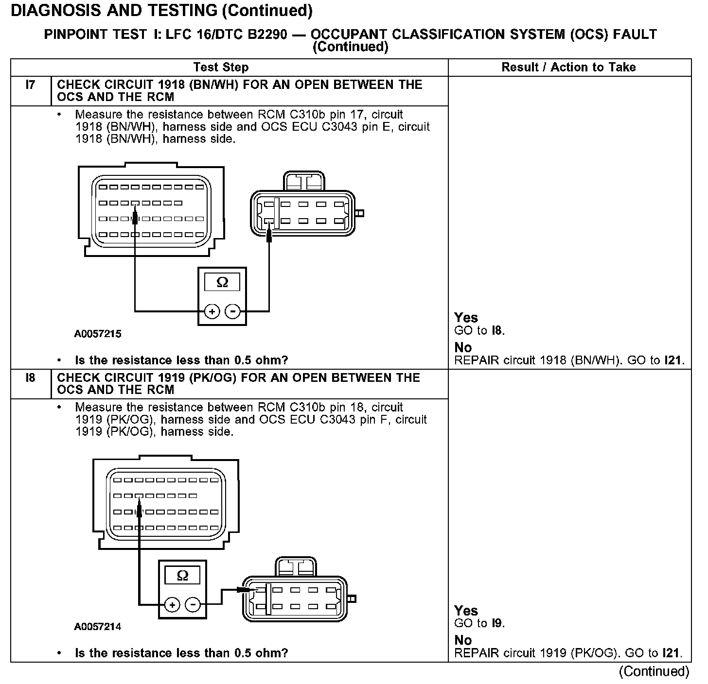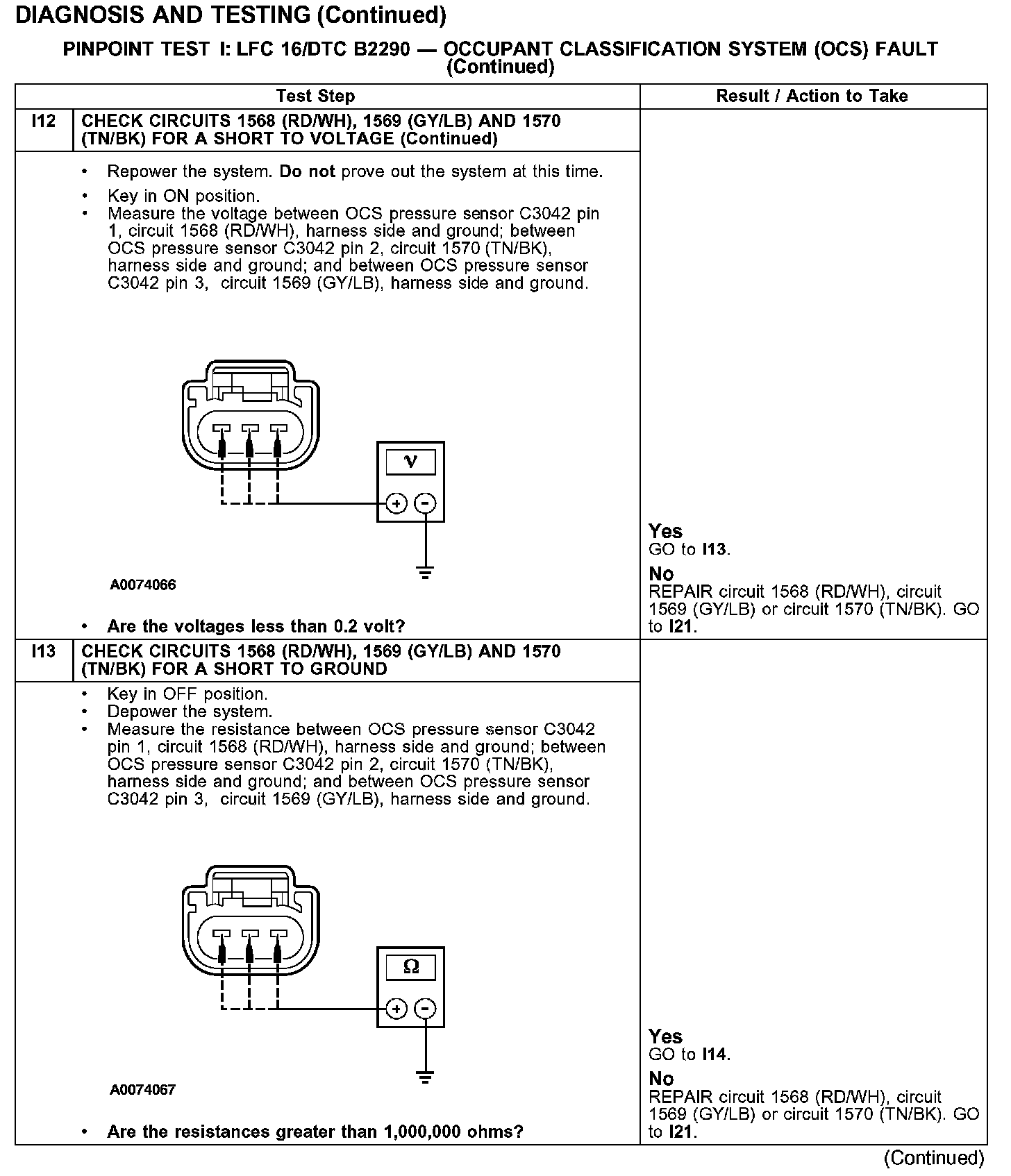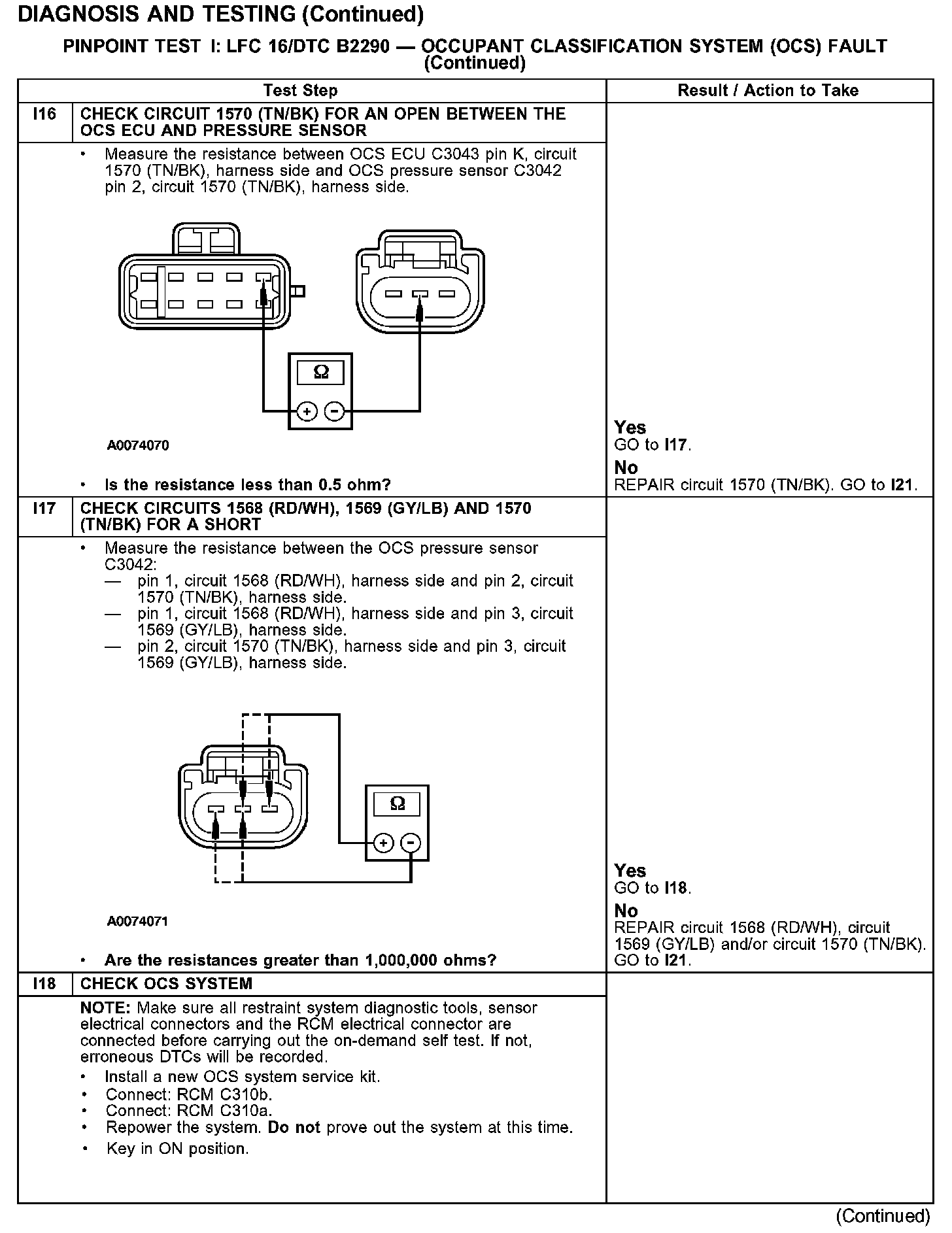 PINPOINT TEST I: LFC 16/DTC B2290 - OCCUPANT CLASSIFICATION SYSTEM (OCS) FAULTTest I1-I2:
