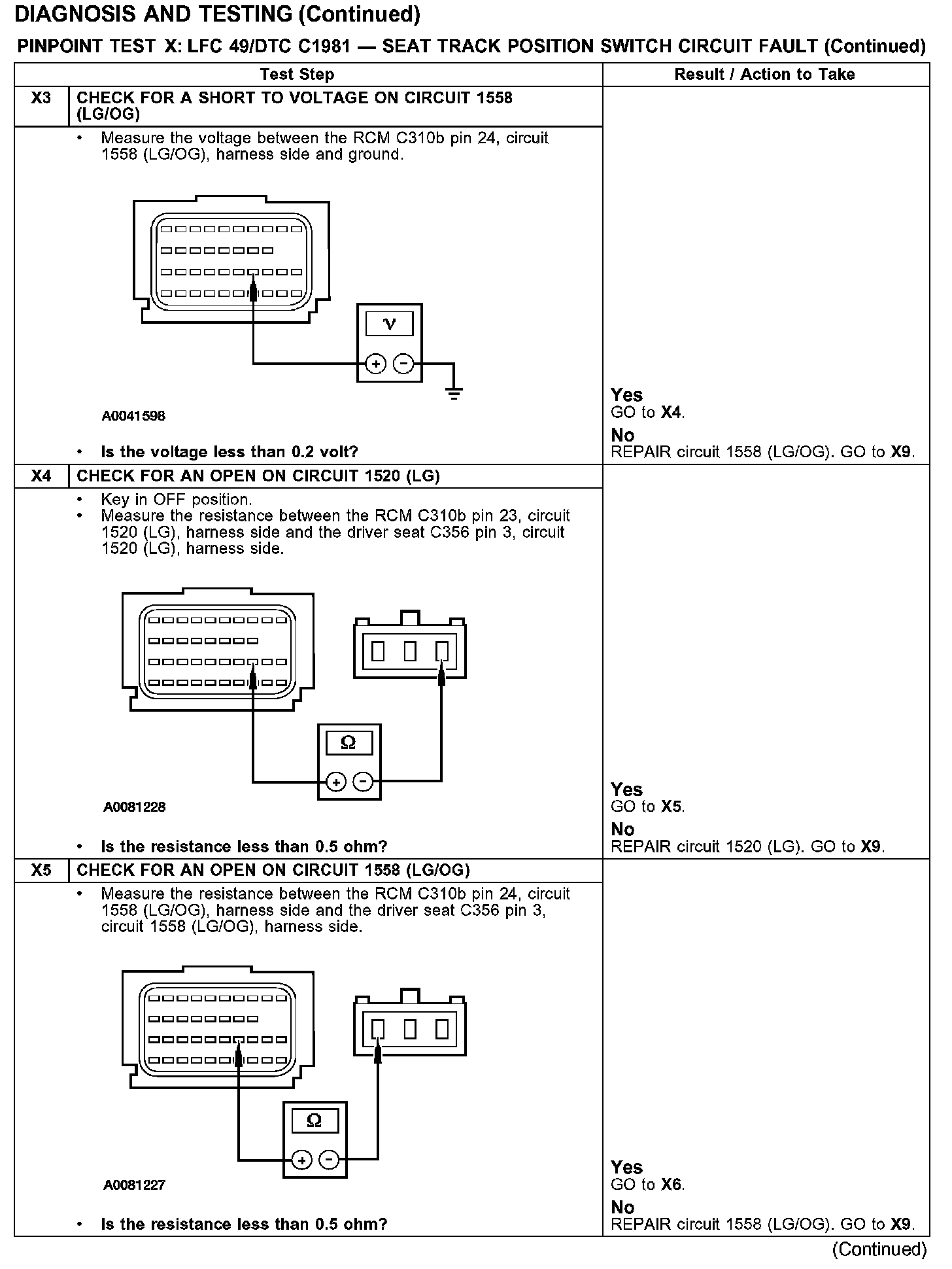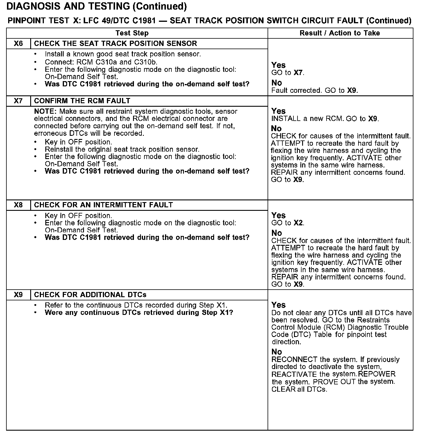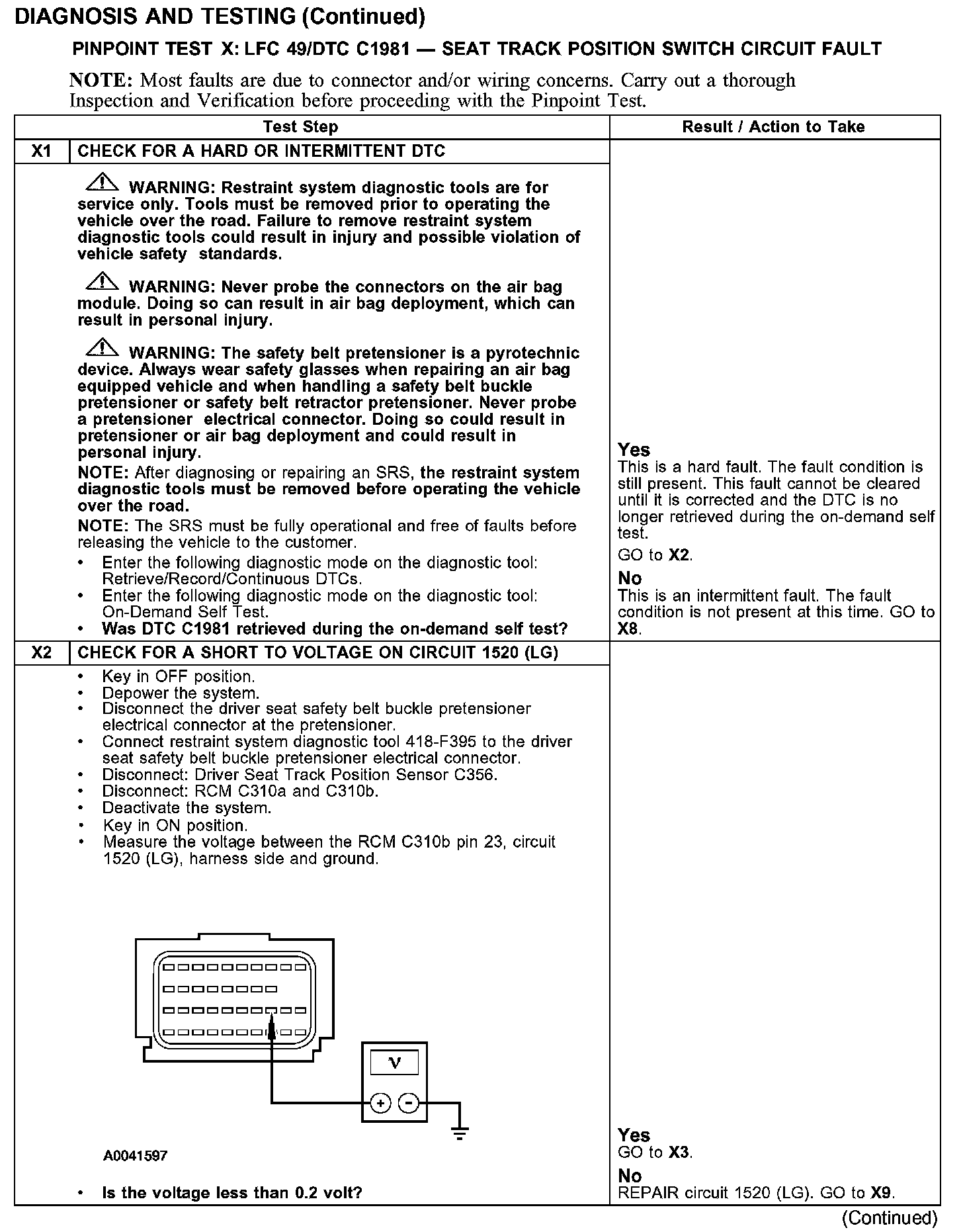 PINPOINT TEST X: LFC 49/DTC C1981 - SEAT TRACK POSITION SWITCH CIRCUIT FAULTTest X1-X2: