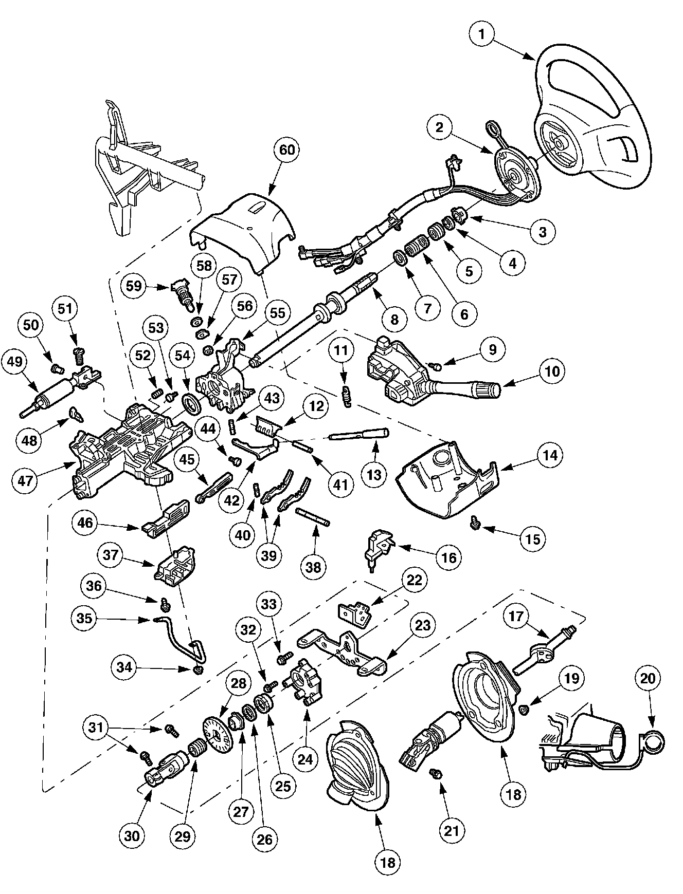 9. WARNING: Steering column position spring is under tension and can come out with great force.