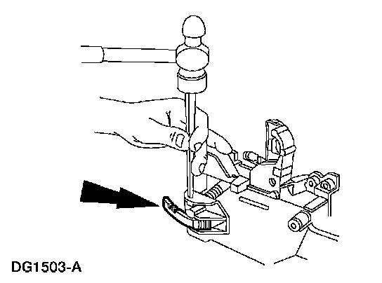 1 Pry up on the lock actuator lever (LH) using a shop fabricated tool.