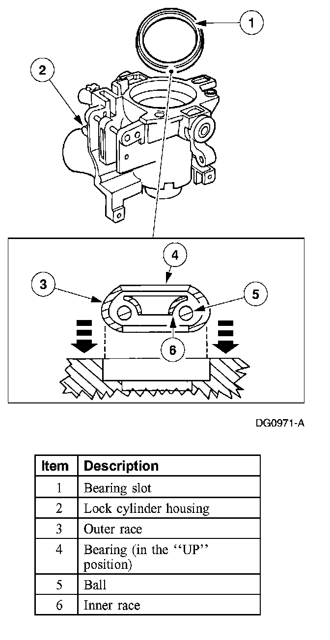 - Lubricate the lock housing bearing with Multipurpose Grease XG-4 or equivalent meeting Ford specification ESB-M1C93-B.