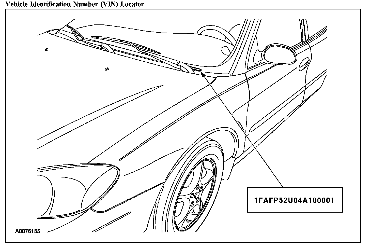 The vehicle identification number (VIN) is a seventeen-digit combination of letters and numbers. The VIN is stamped to a metal tab riveted to the instrument panel top, upper left of the dash. The VIN number is also found on the vehicle certification (VC) label.