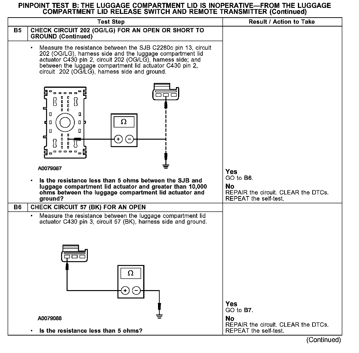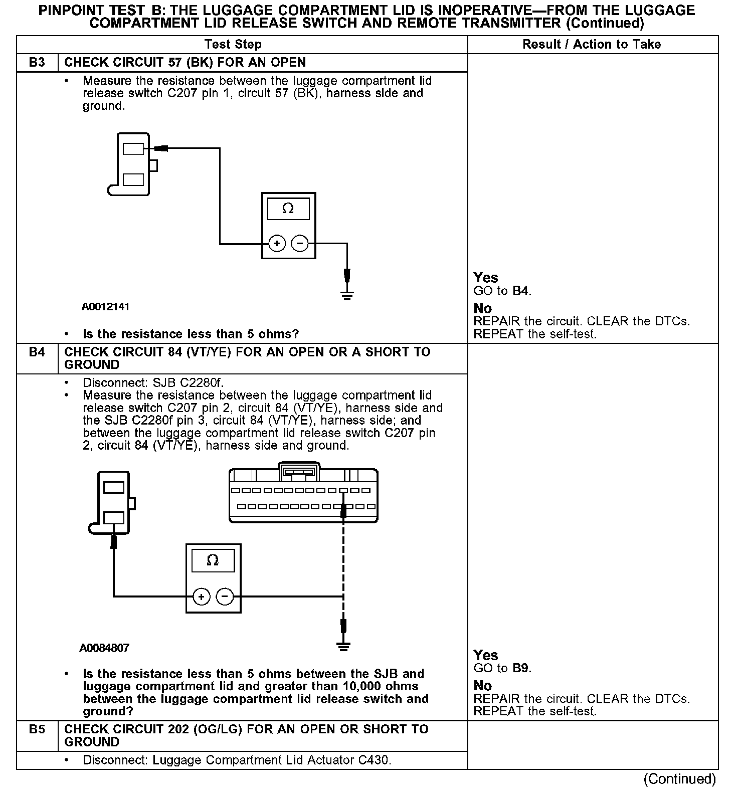 PINPOINT TEST B: THE LUGGAGE COMPARTMENT LID IS INOPERATIVE - FROM THE LUGGAGE COMPARTMENT LID RELEASE SWITCH AND REMOTE TRANSMITTER