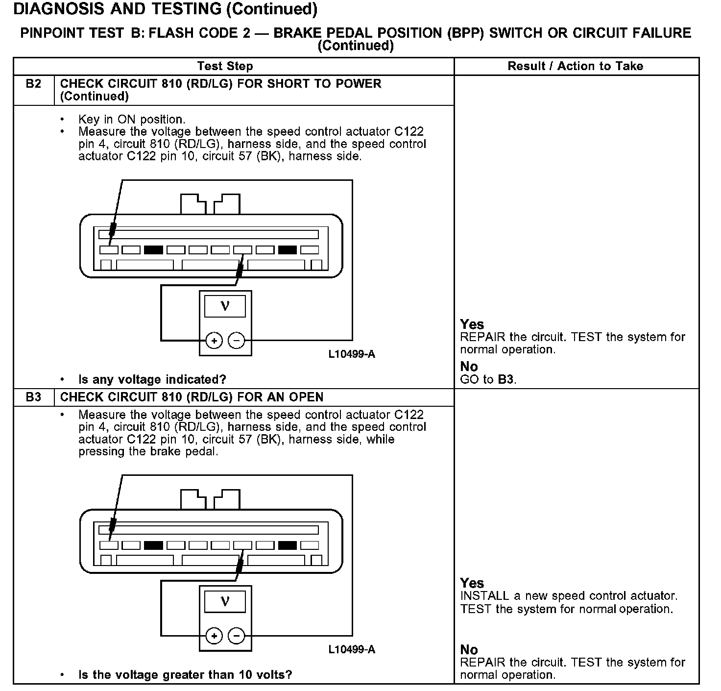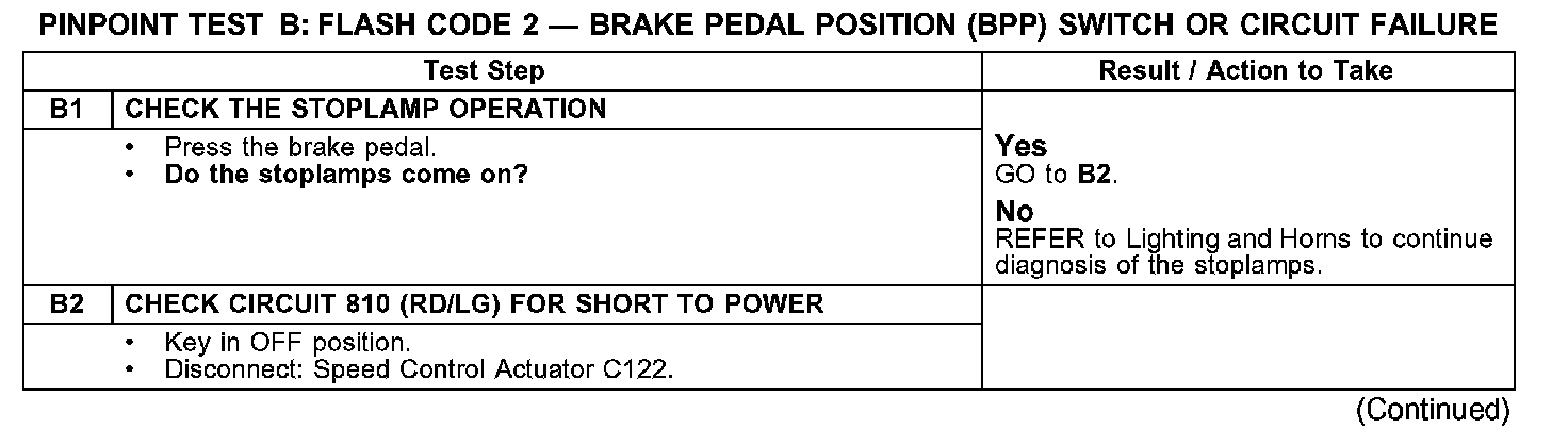 PINPOINT TEST B: FLASH CODE 2 - BRAKE PEDAL POSITION SWITCH OR CIRCUIT FAILURE