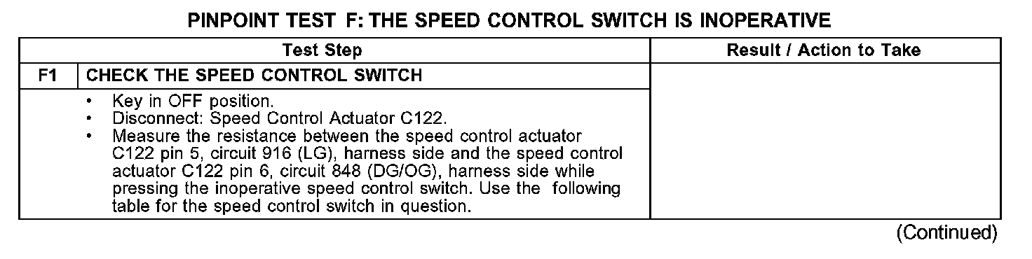 PINPOINT TEST F: THE SPEED CONTROL SWITCH IS INOPERATIVE