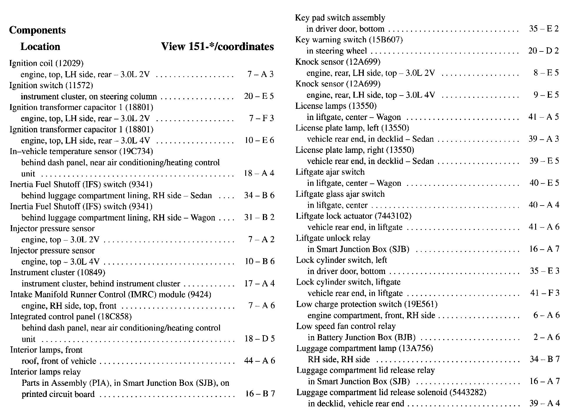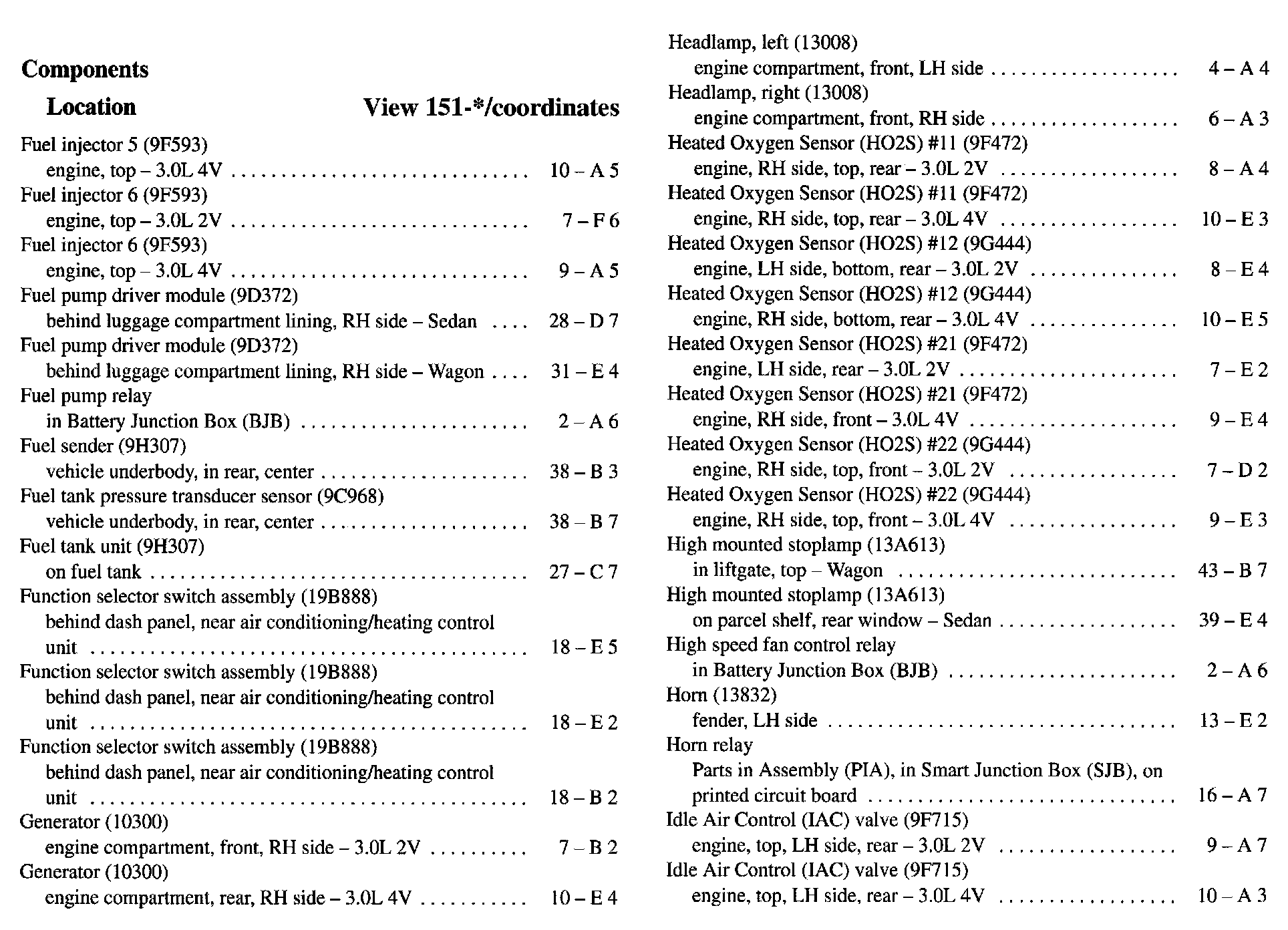 Component Location Index