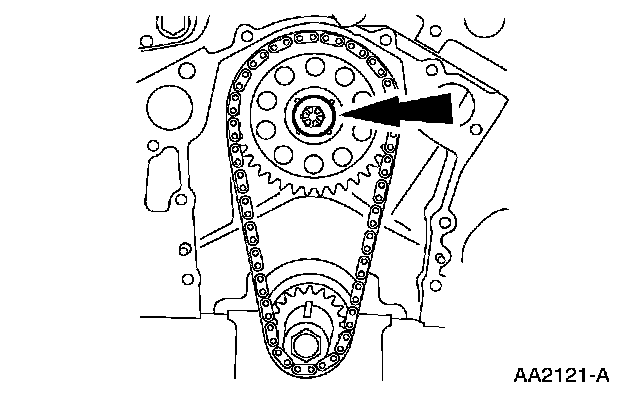 3. Remove the camshaft sprocket bolt.