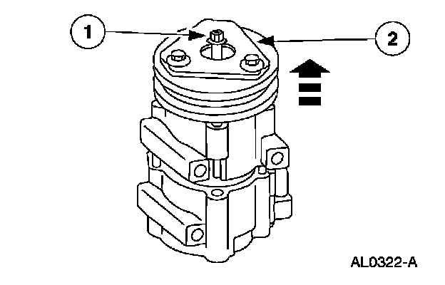 1 Thread an 8 x 1.25 mm (0.04 in) bolt into the A/C clutch disc and hub to force it from the A/C compressor shaft (if needed).