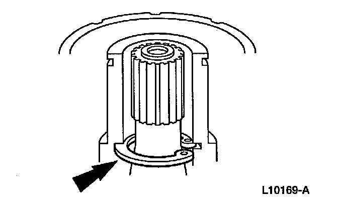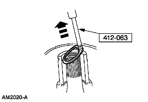 8. Pull the special tool up quickly while keeping the tool shaft against the side of the nose opening and remove the snap ring.