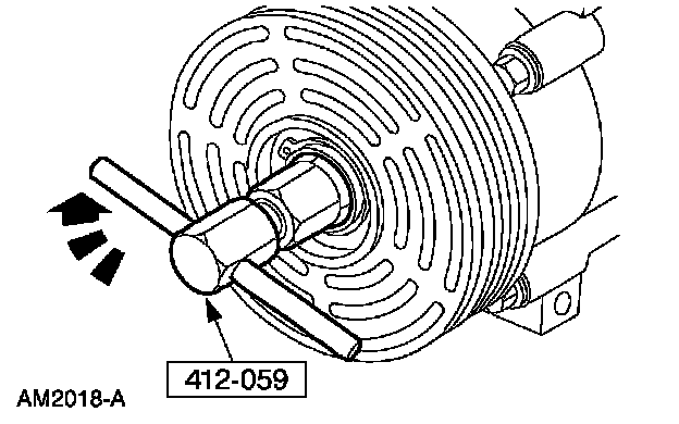 1 Hold the A/C clutch disc and hub with the special tool.