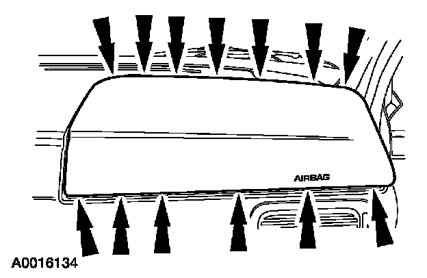 3 Pull the passenger air bag module and trim cover away from the I/P, but do not remove it.
