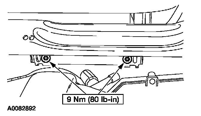 7. Through the glove box opening, install the passenger air bag module retaining bolts.