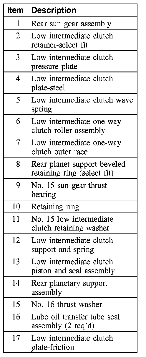 4. Remove the low-intermediate clutch support and spring assembly.