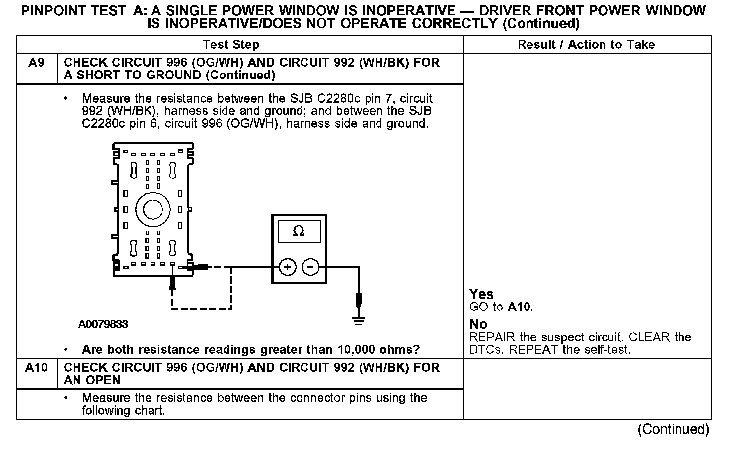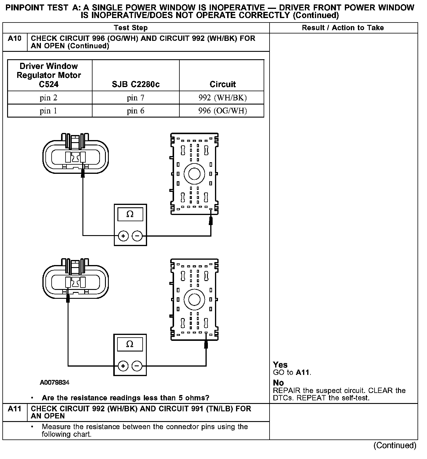 PINPOINT TEST A: A SINGLE POWER WINDOW IS INOPERATIVE - DRIVER FRONT POWER WINDOW IS INOPERATIVE/DOES NOT OPERATE CORRECTLY