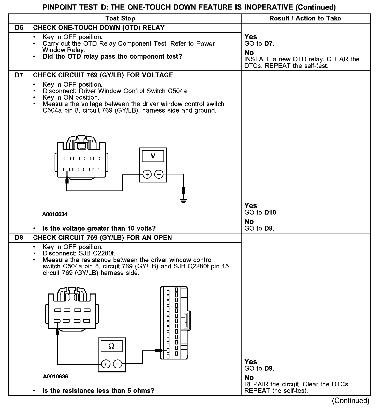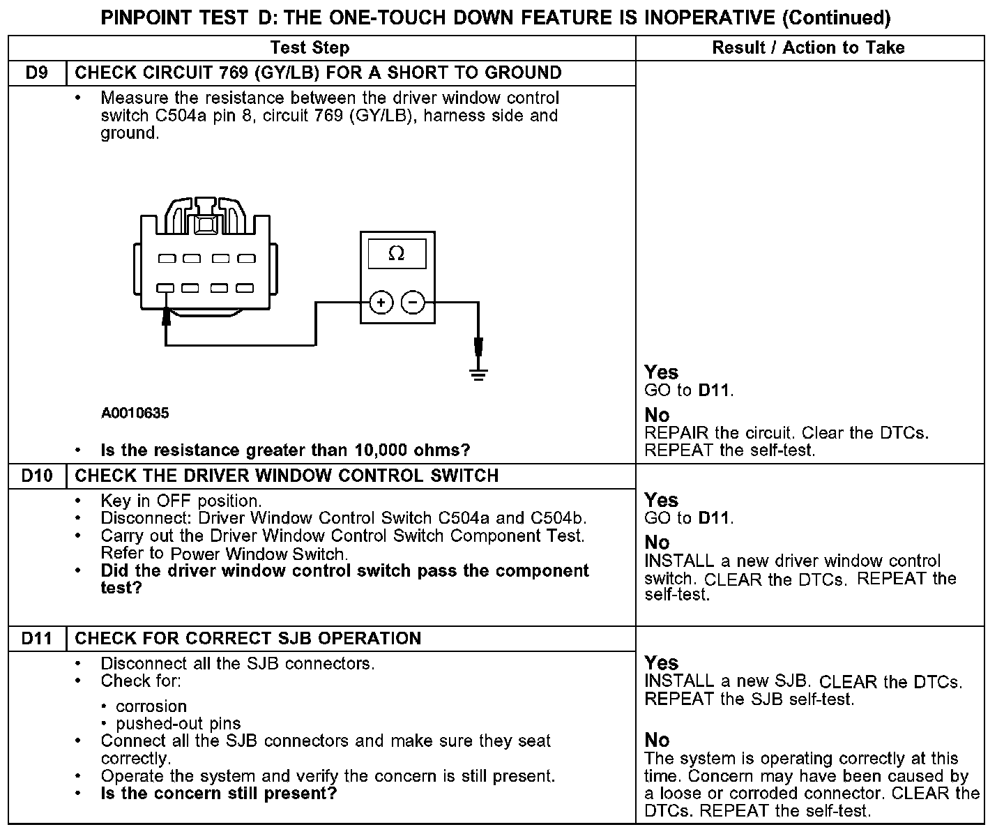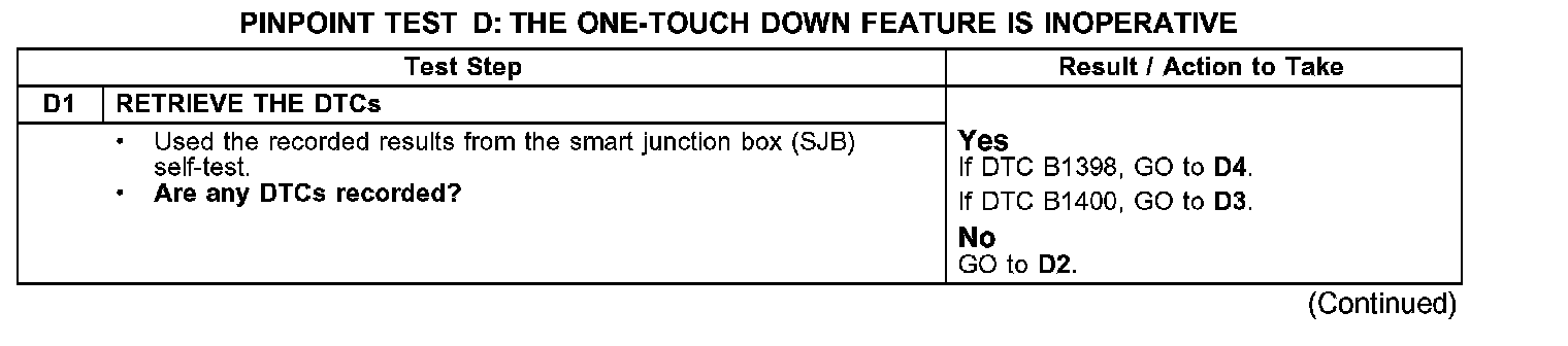 PINPOINT TEST D: THE ONE-TOUCH DOWN FEATURE IS INOPERATIVE