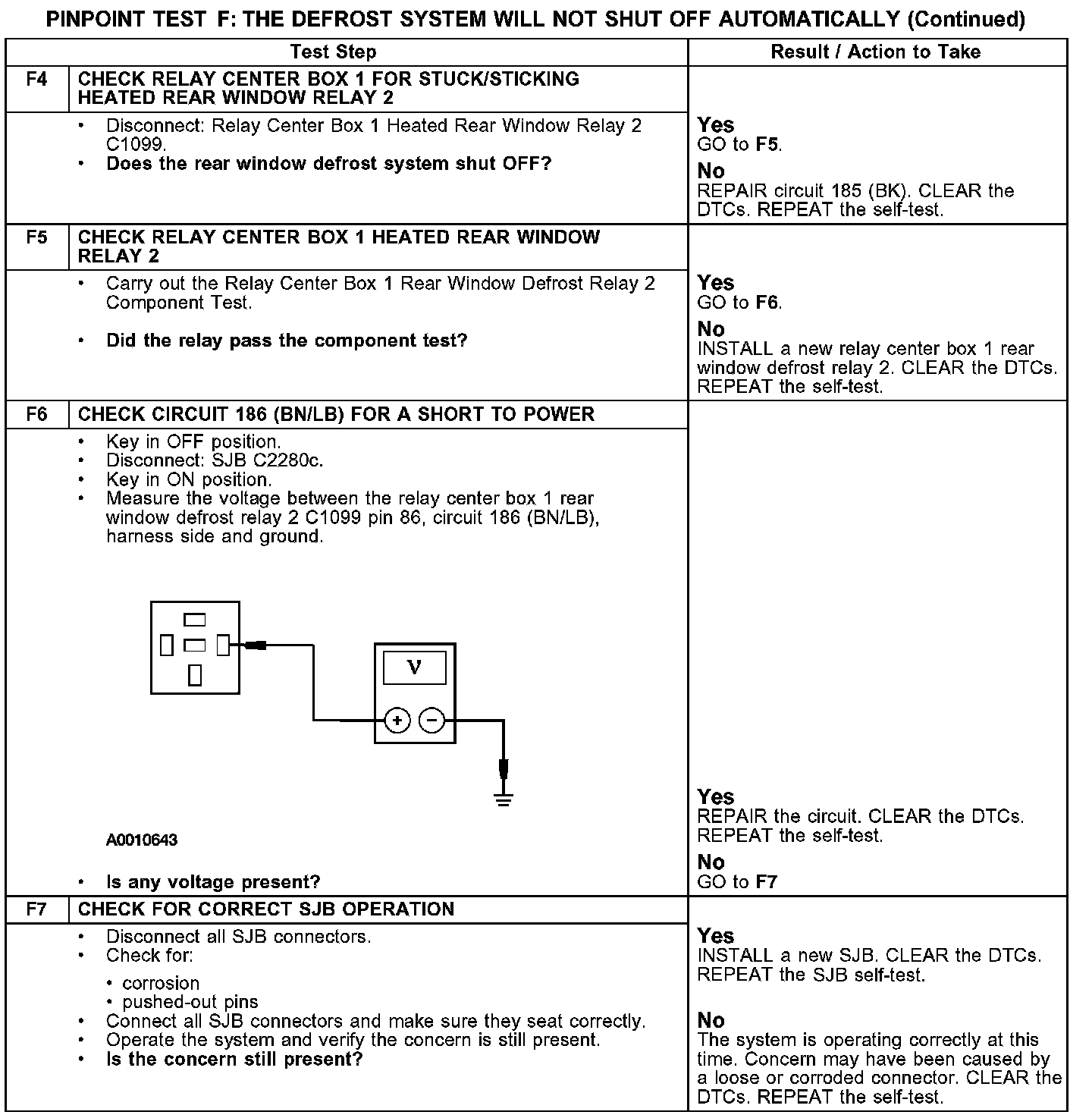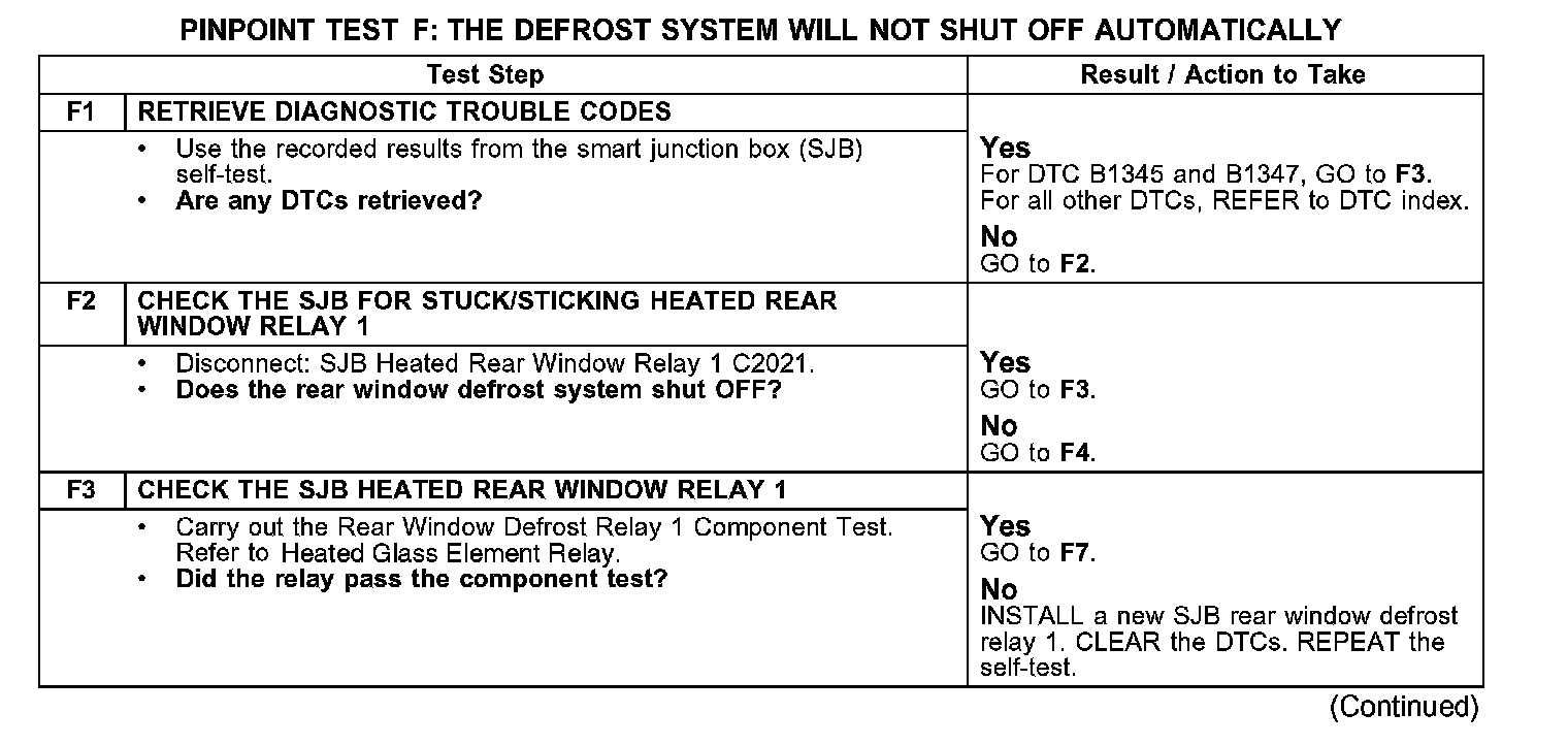 PINPOINT TEST F: THE DEFROST SYSTEM WILL NOT SHUT OFF AUTOMATICALLY