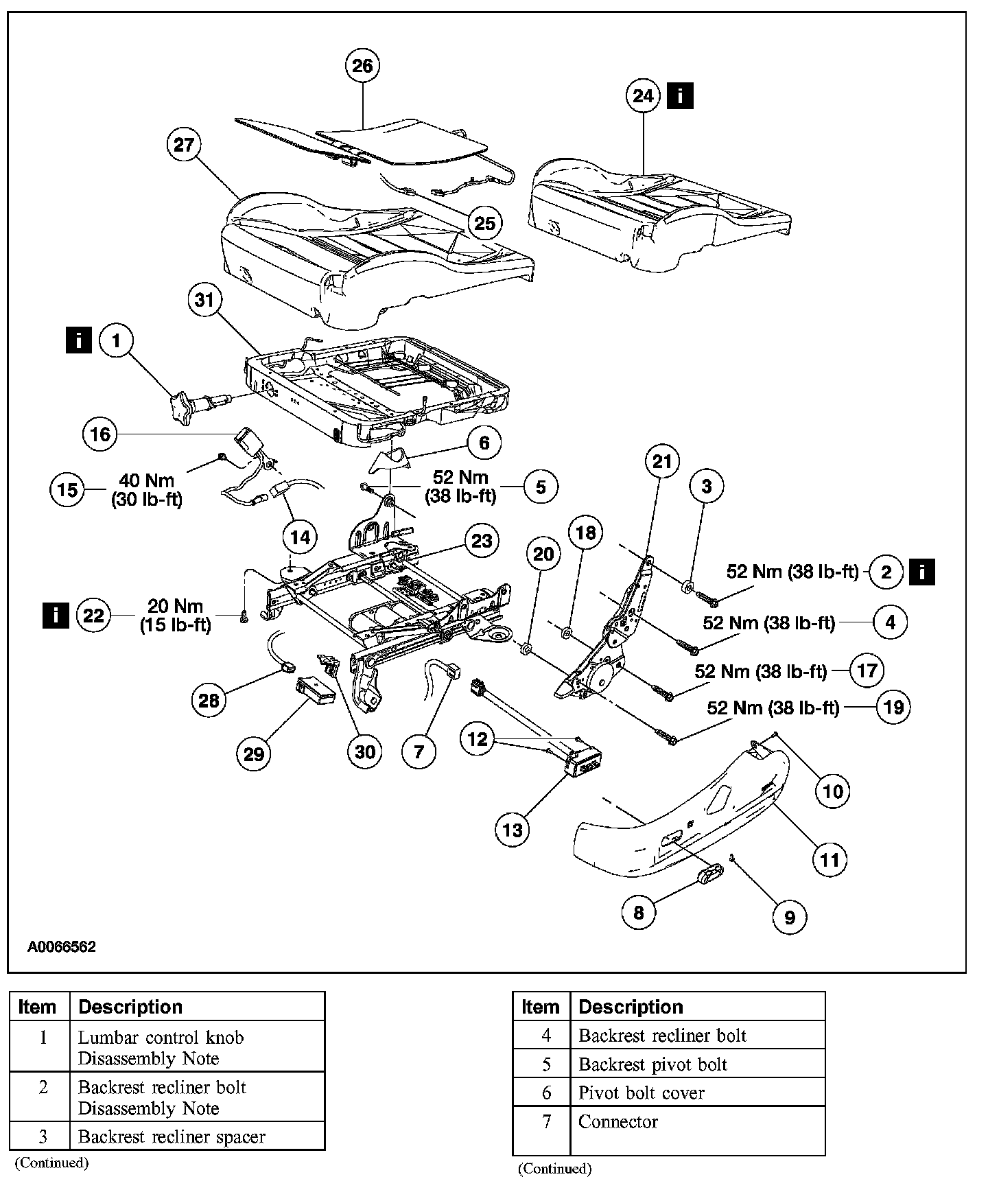 Item 2: Backrest Recliner Bolt Disassembly Note