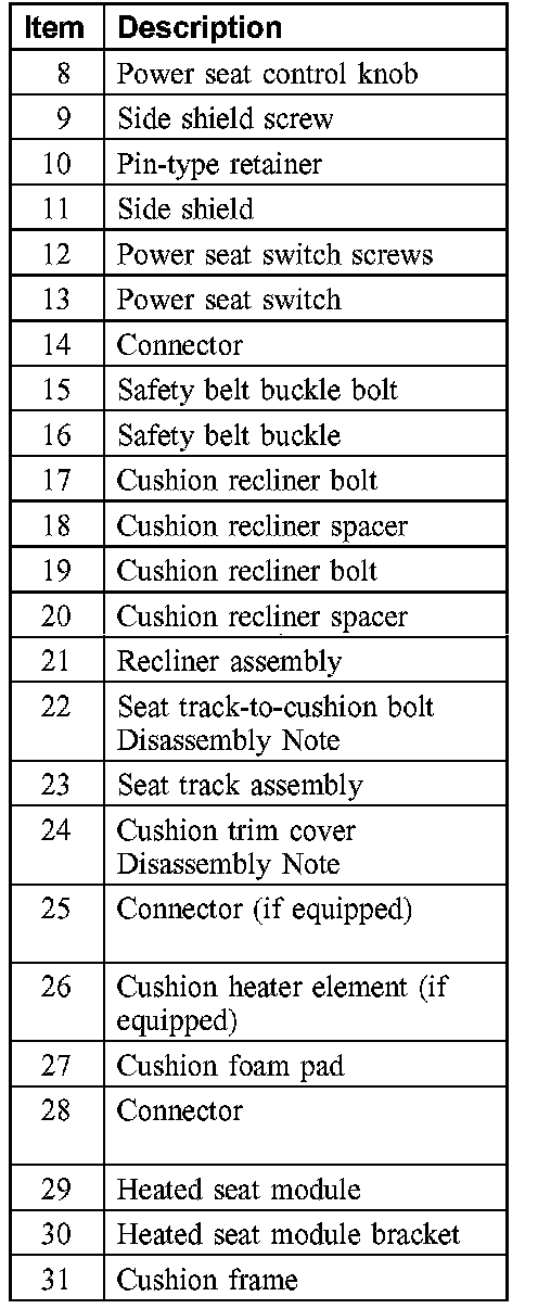 Item 22: Seat Track-to-Cushion Bolt Disassembly Note