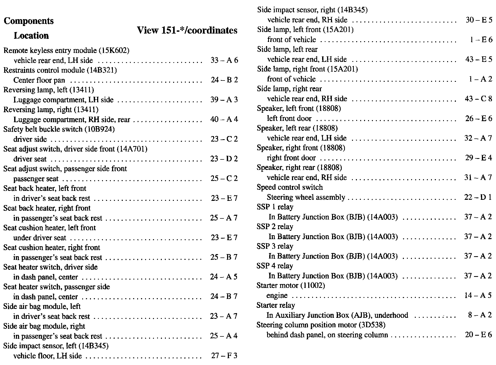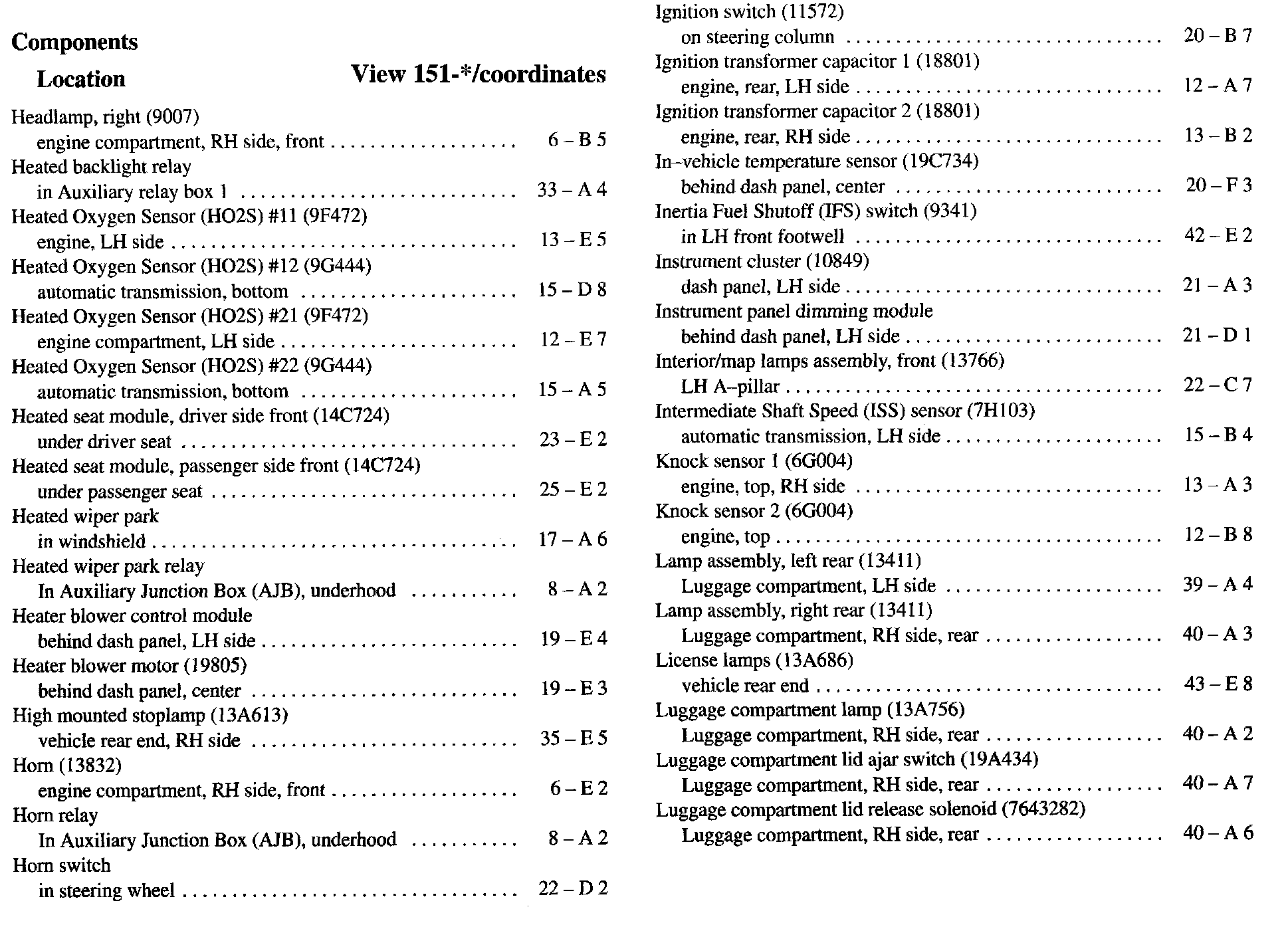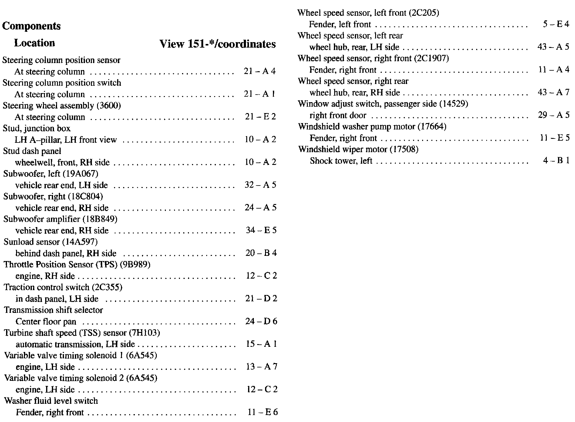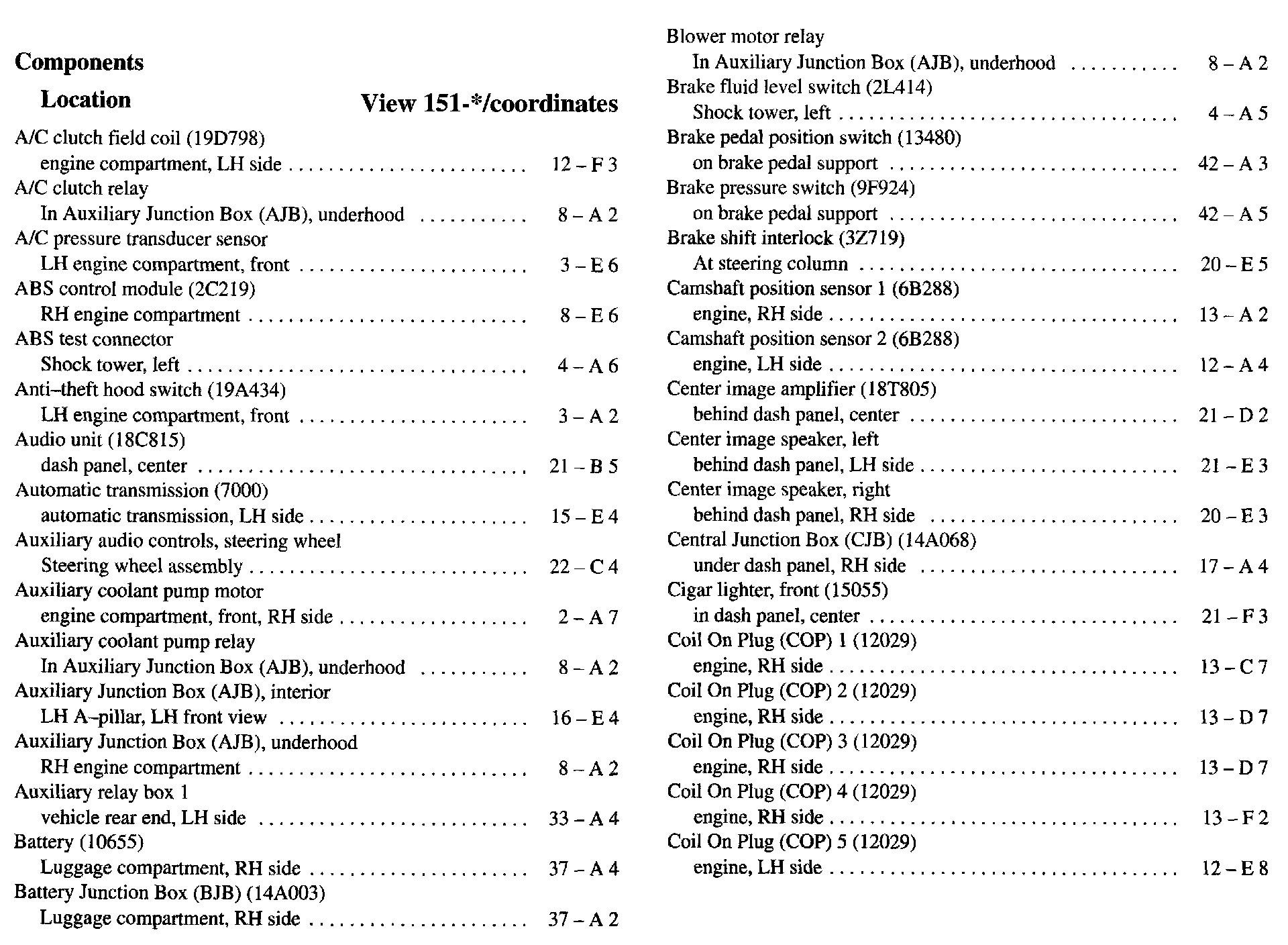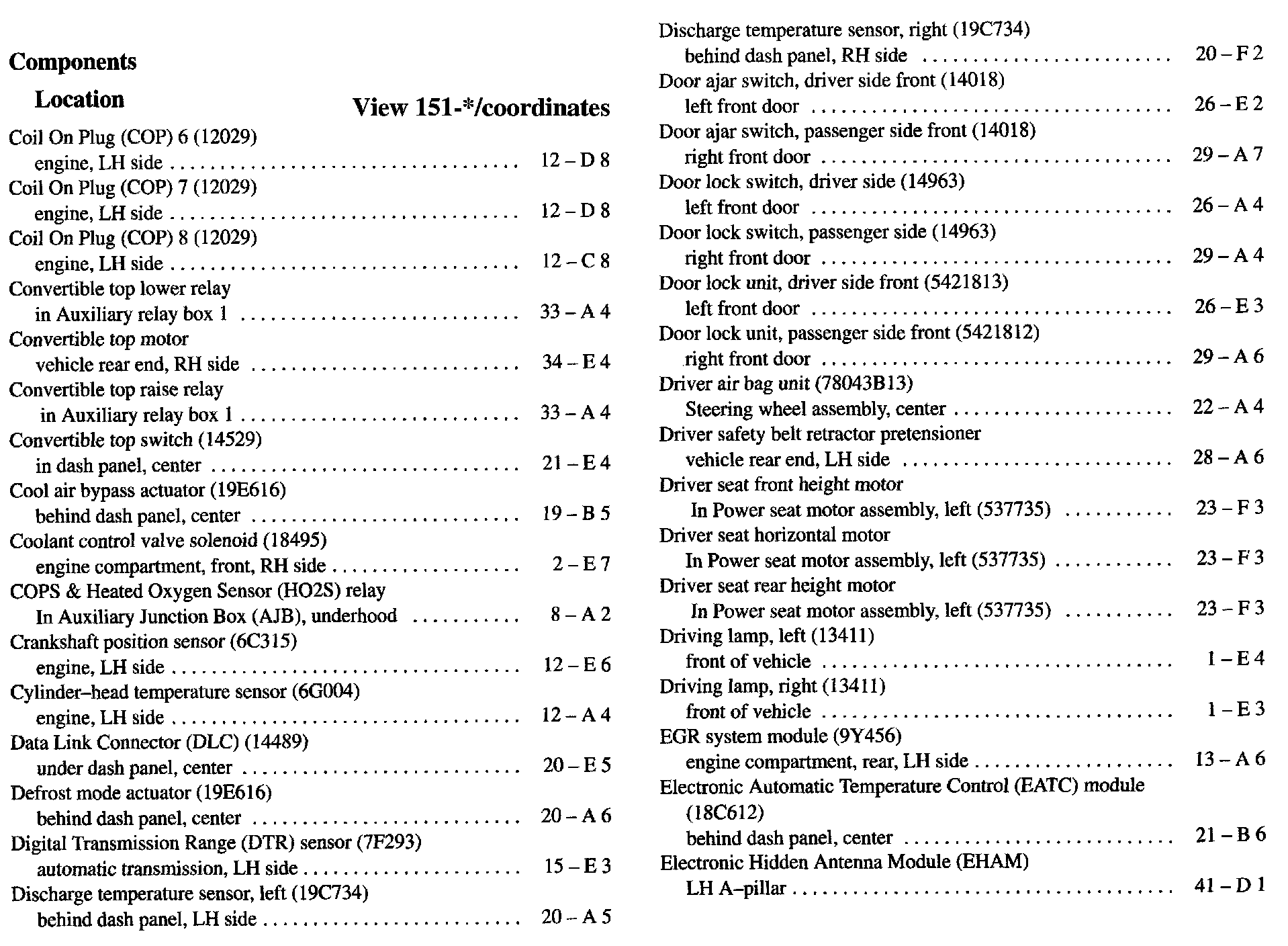 Component Location Index