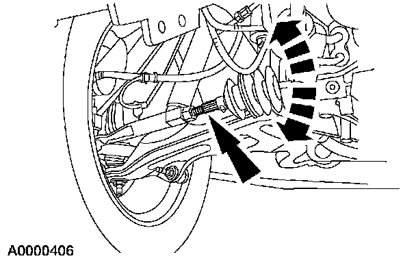 4. NOTE: Do not allow the steering gear bellows to twist when the front wheel spindle tie-rod is rotated.