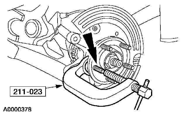 1. Using the special tool, separate the wheel stud from the wheel hub flange.