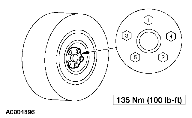 CAUTION: Failure to tighten the wheel nuts in a star pattern can result in high brake disc runout, which will speed up the development of brake roughness, shudder and vibration.