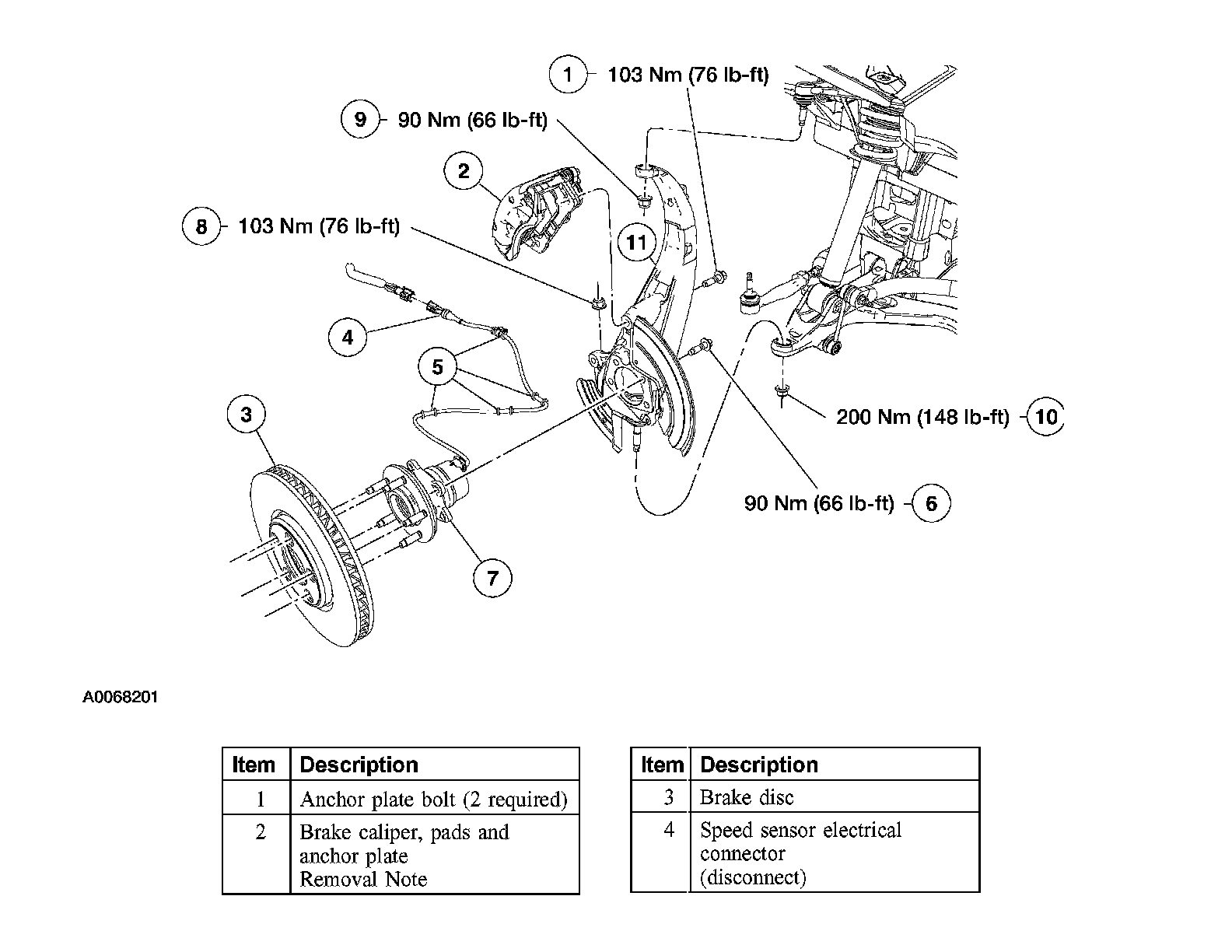 Item 2: Brake Caliper, Pads, and Anchor Plate Removal Note