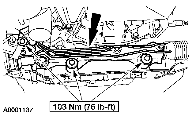 1. Remove and discard the nut. Position aside the power steering reservoir.