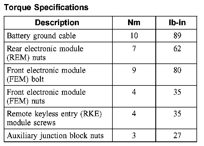 Torque Specifications: