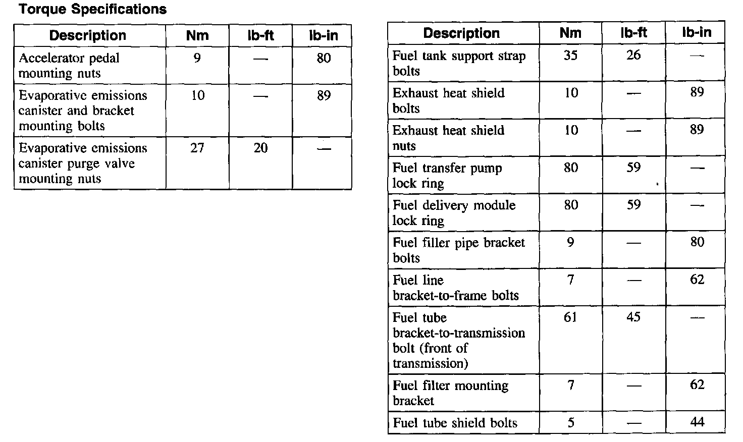 Torque Specifications: