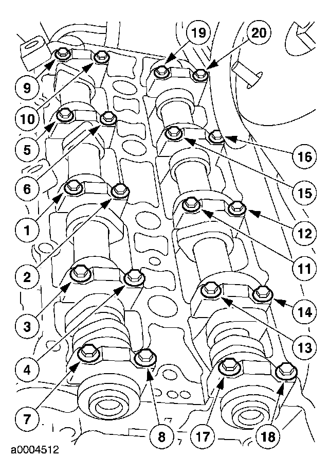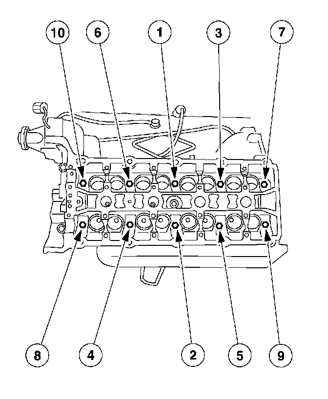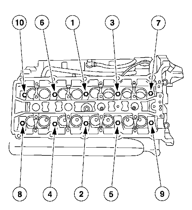 Tighten bolts 1 through 10 to 20 Nm (15 ft. lbs.).