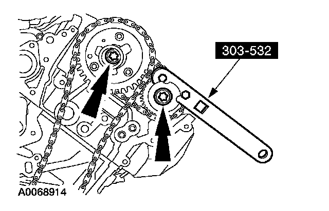 Tighten the LH exhaust camshaft sprocket and VCT unit bolts in two stages: