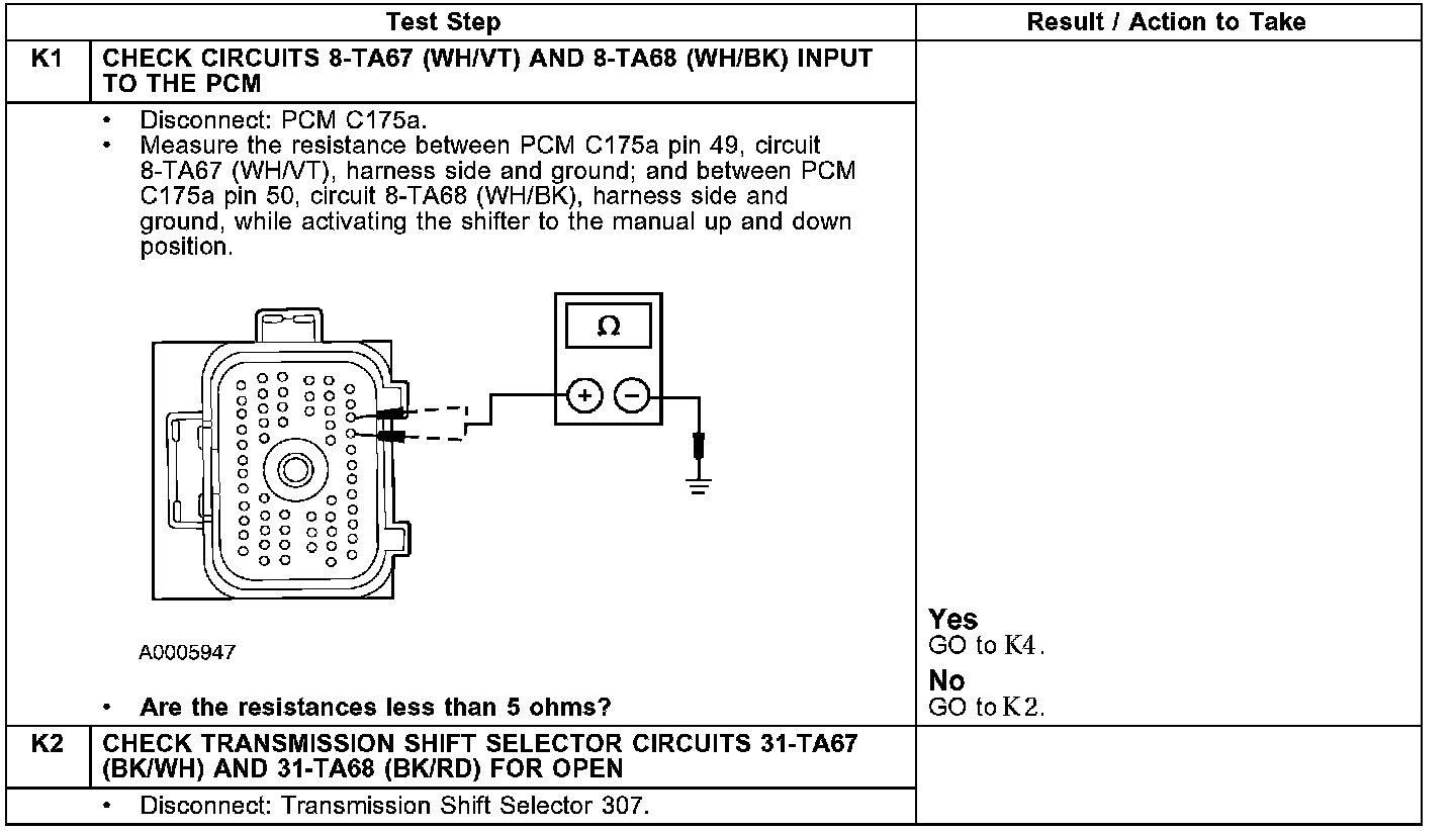 PINPOINT TEST K: THE TRANSMISSION MANUAL SHIFT (+/-) IS INOPERATIVE