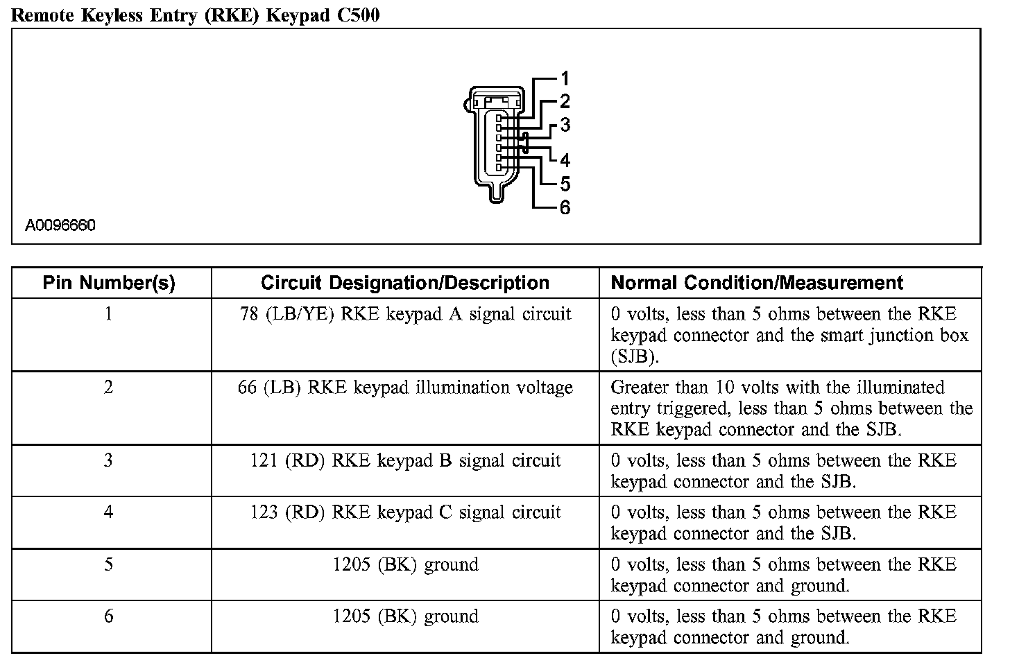 Remote Keyless Entry (RKE) Keypad C500: