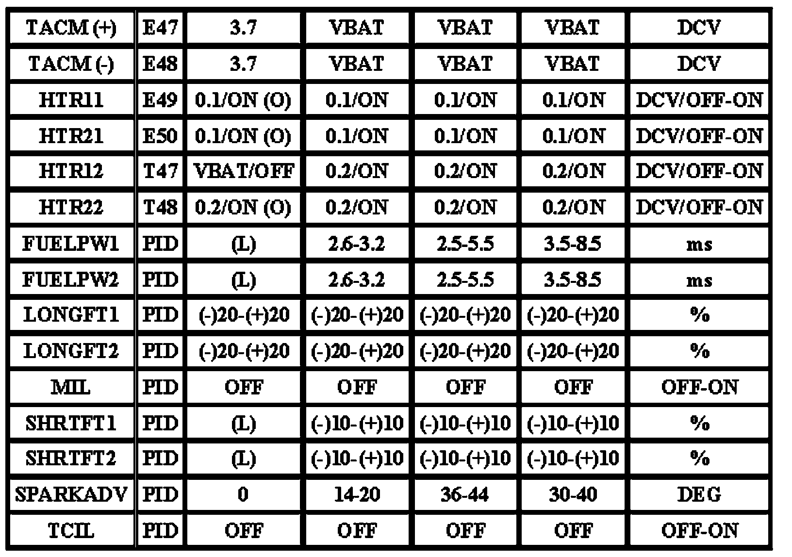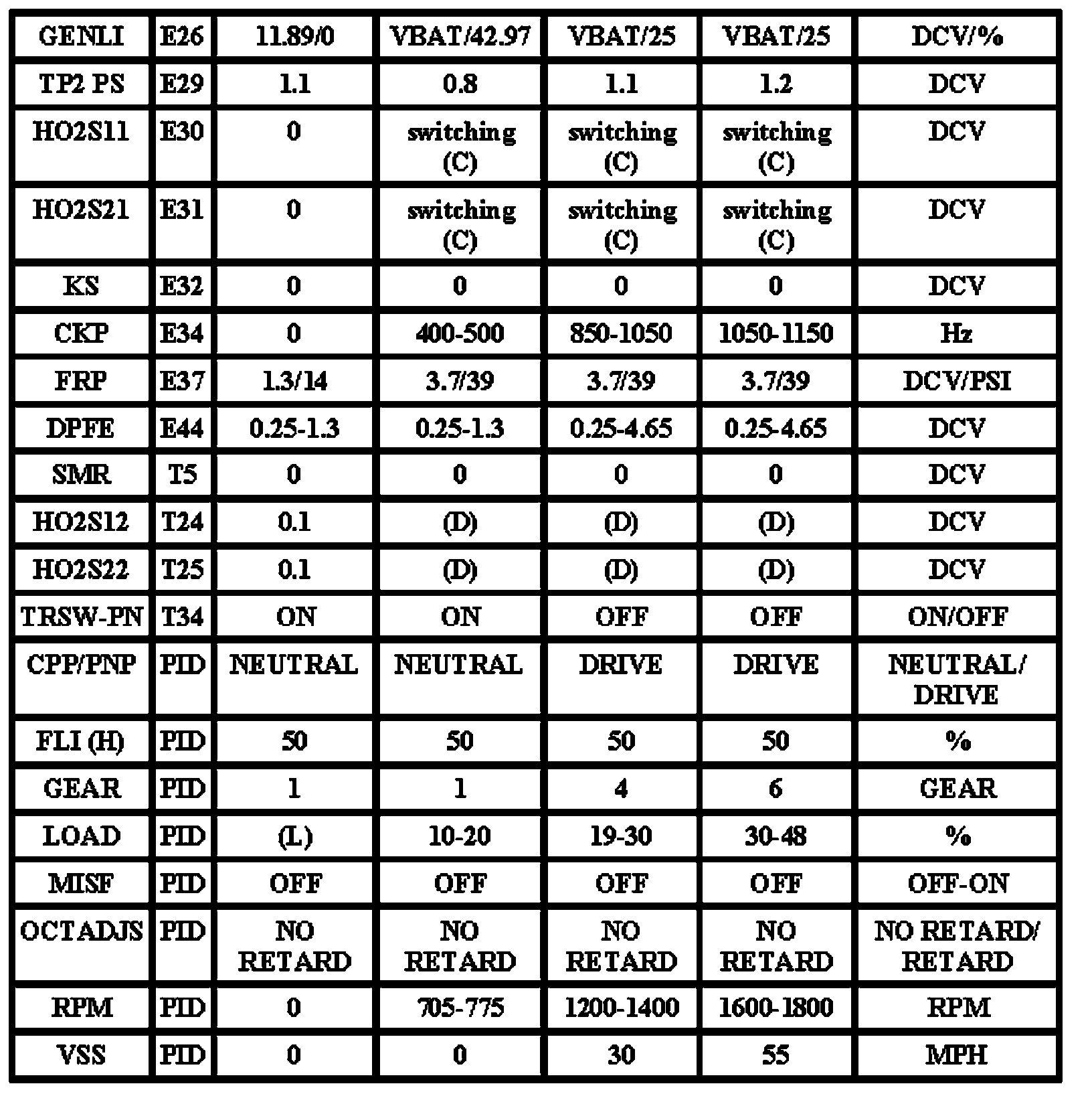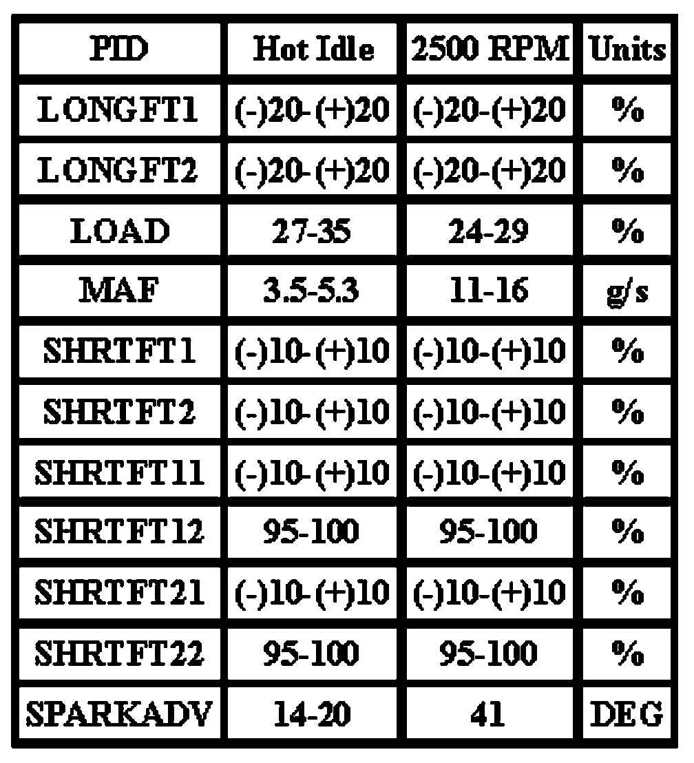 Note: All generic OBD readings under no load (PARK or NEUTRAL).