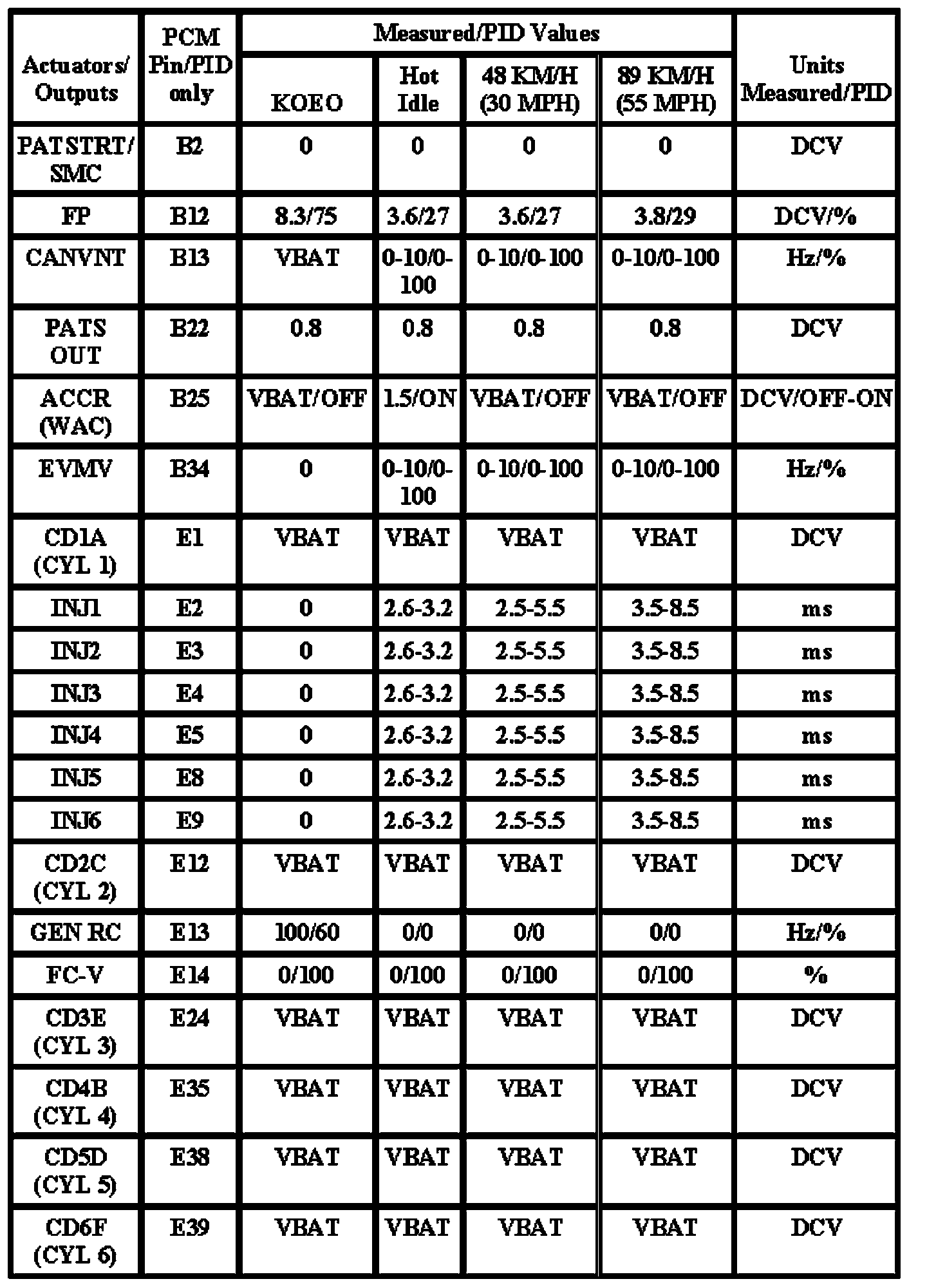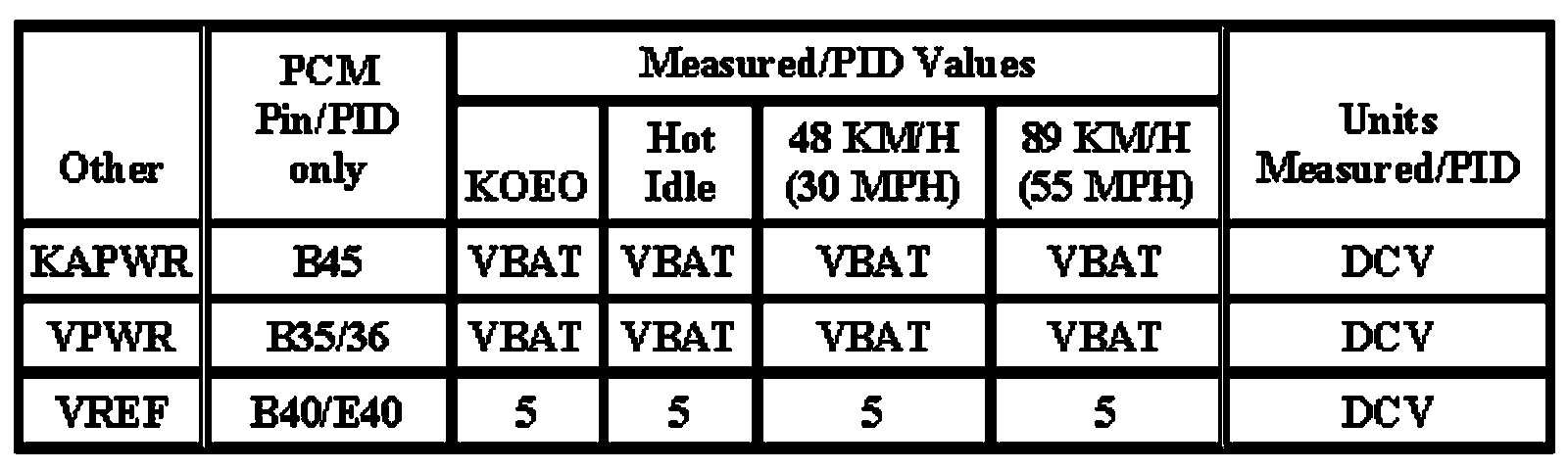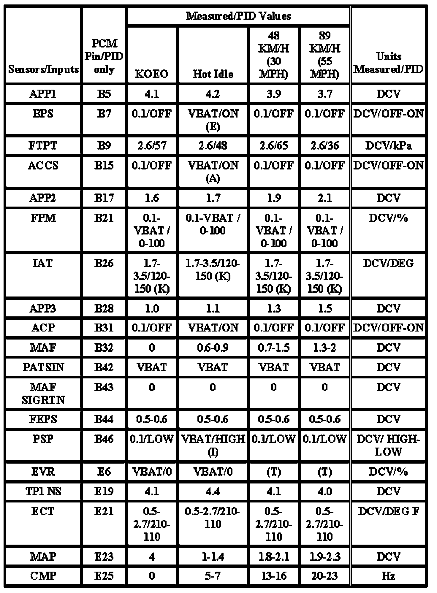Note: All generic OBD readings under no load (PARK or NEUTRAL).
