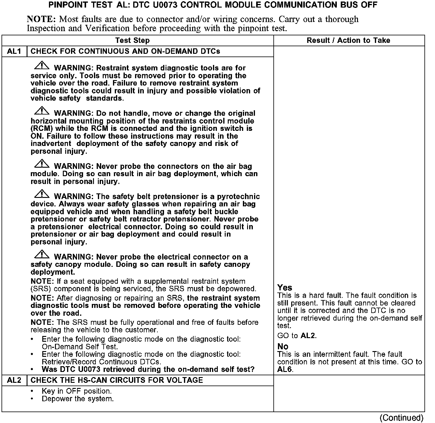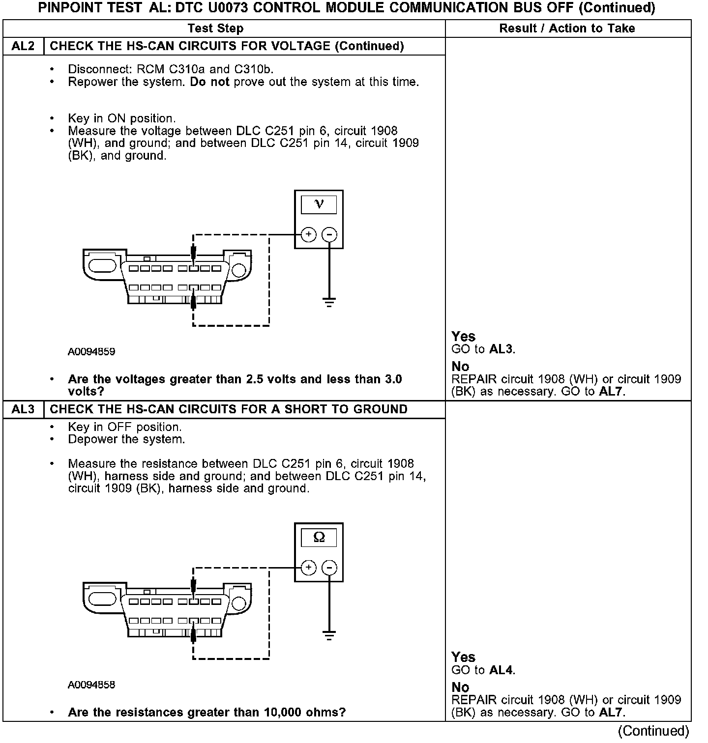 PINPOINT TEST AL: DTC U0073 - CONTROL MODULE COMMUNICATION BUS OFFAL1-AL2:
