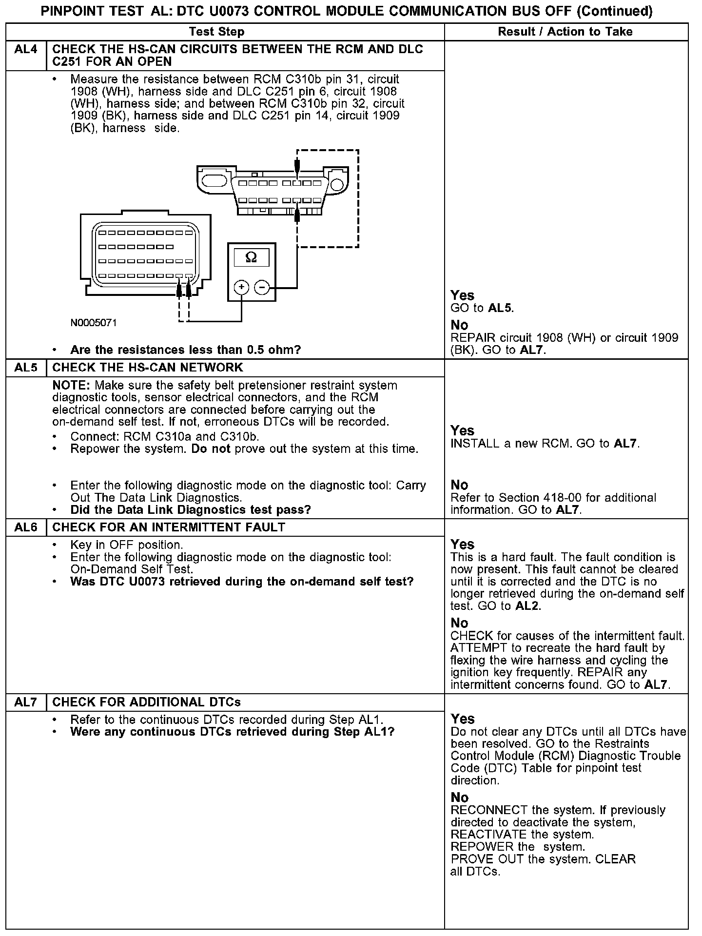 Tests AL: DTC U0073 - Control Module Communication Bus Off