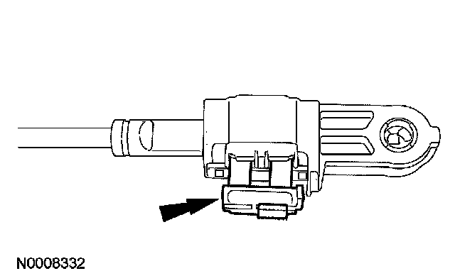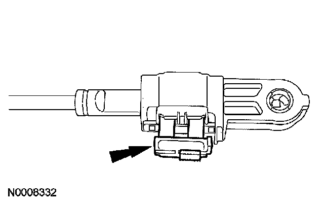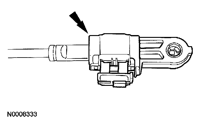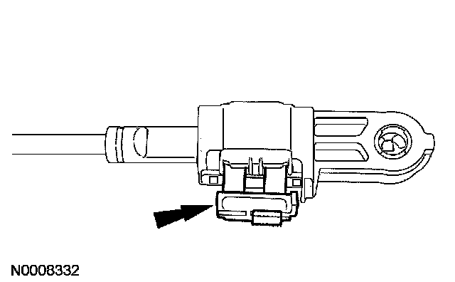 18. With the adjuster locking tab released, connect the shift cable end to the manual lever.