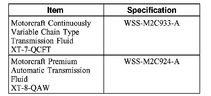 CAUTION: MERCON, MERCON V, MERCON SP, Motorcraft Premium Automatic Transmission Fluid and Motorcraft Continuously Variable Chain Type Transmission Fluid are not interchangeable transmission fluids. The use of any fluid other than what is recommended for this transmission will cause transmission damage.