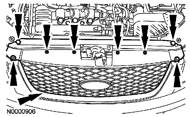 2. Remove the 8 retainers for the upper grille opening cover and remove the cover.