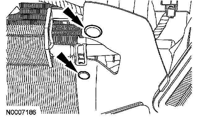 5. Remove the RH air deflector push pins. Position the air deflector aside.